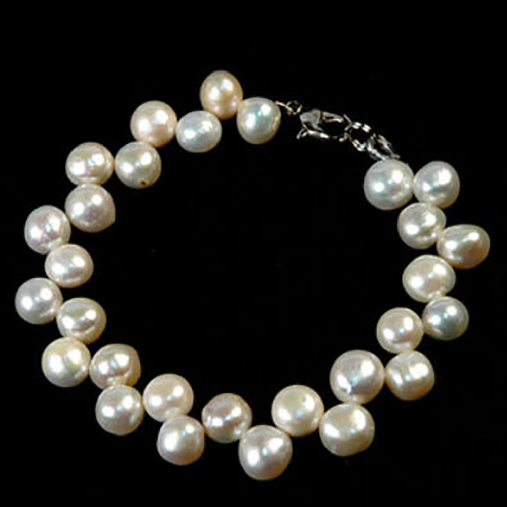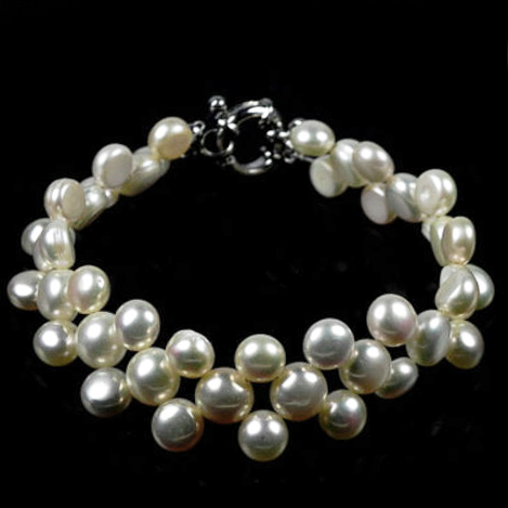 Эффектный браслет из культивированного белого жемчуга.