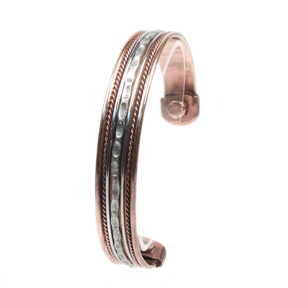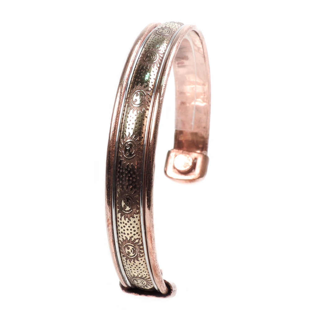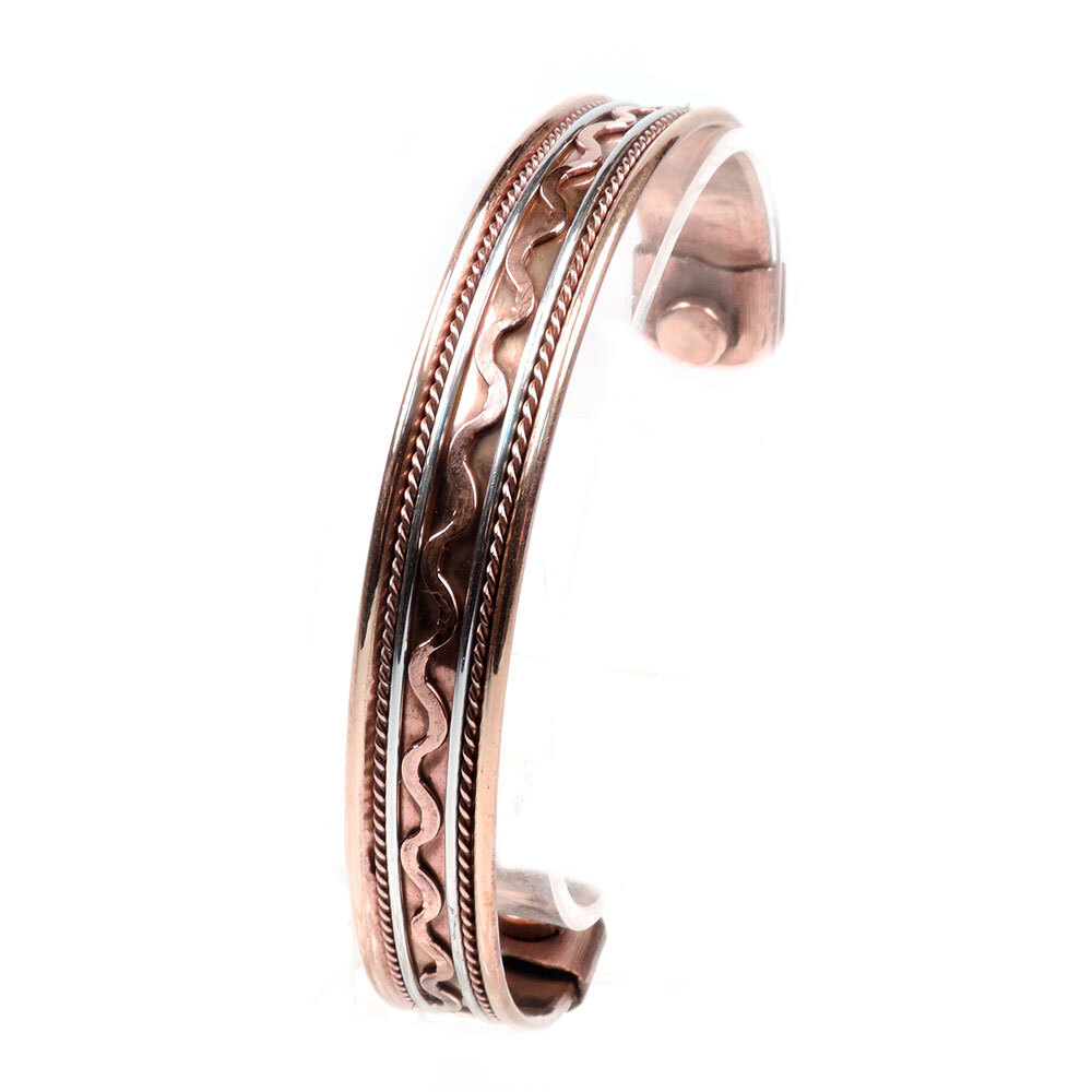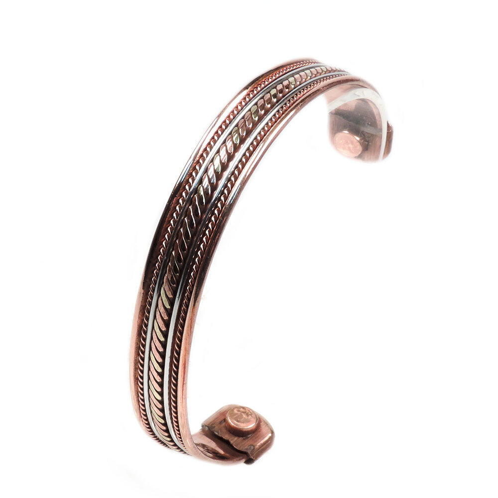 Организму требуется этот важный элемент. Человек получает медь из продуктов и воды. Нехватка этого элемента приводит к серьезным последствиям. В одном литре крови содержится до 25 мкм меди. Суточная норма на килограмм веса составляет 0,05 мг вещества. Иногда в крови его содержится мало и нужно восполнять эту нехватку. Одни предпочитают лекарства, когда появляется необходимость в восполнении меди. Не всем нравится постоянно пить таблетки, которые к тому же могут быть дорогими. К счастью, медь также проникает в организм через кожу и впитывается без проблем. Поэтому люди выбирают ношение медных украшений. Помочь могут и медные браслеты. Во время ношения наш организм начинает восстанавливать дефицит этого важного элемента. Постепенно на коже появляются зеленоватые следы-это является показателем работы браслета. Рекомендовано носить медные украшения при гипертонии и гипотонии. Считается, что помогает медный браслет от давления, болевого синдрома, артрита и плохого самочувствия.