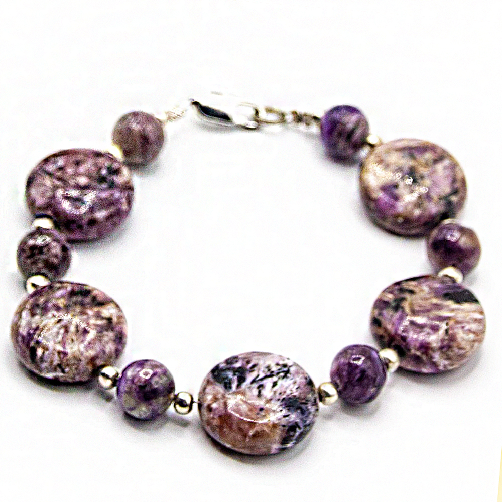 Как лекарь чароит следит за общим состоянием организма, более всего обращает внимание на нервную систему, успокаивая и снимая стрессы, активизируя мозг, память. Он очень полезен при заболеваниях позвоночника, грыжах позвоночника, прострелах, люмбаго, исправляет искривления позвоночника, помогает при переломах костей.