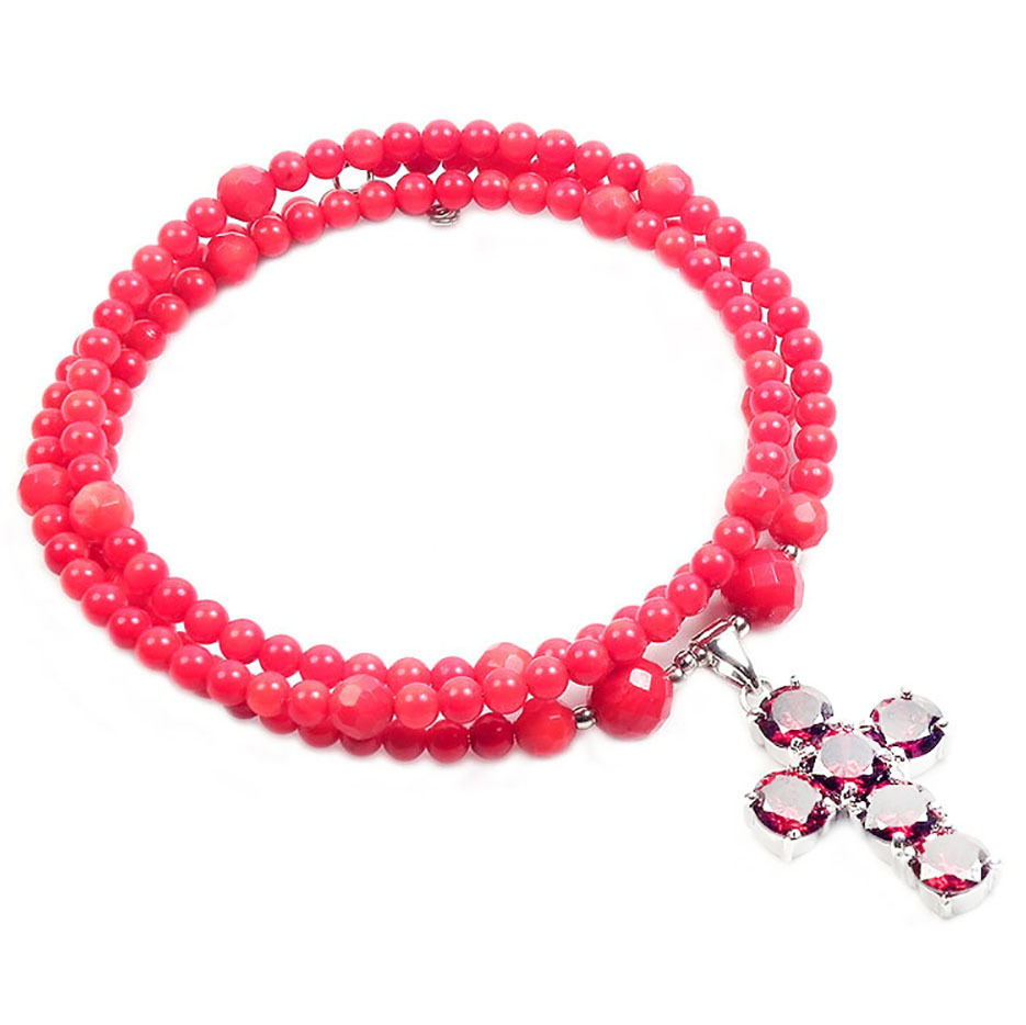 2. Диаметр бусин; гладкие 4мм, с огранкой 5мм. Цвет насыщенный темно-красный.