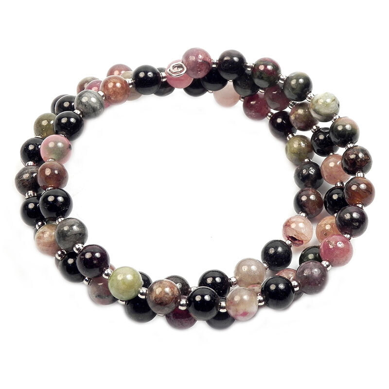Оригинальный яркий браслет-пружина из натурального турмалина