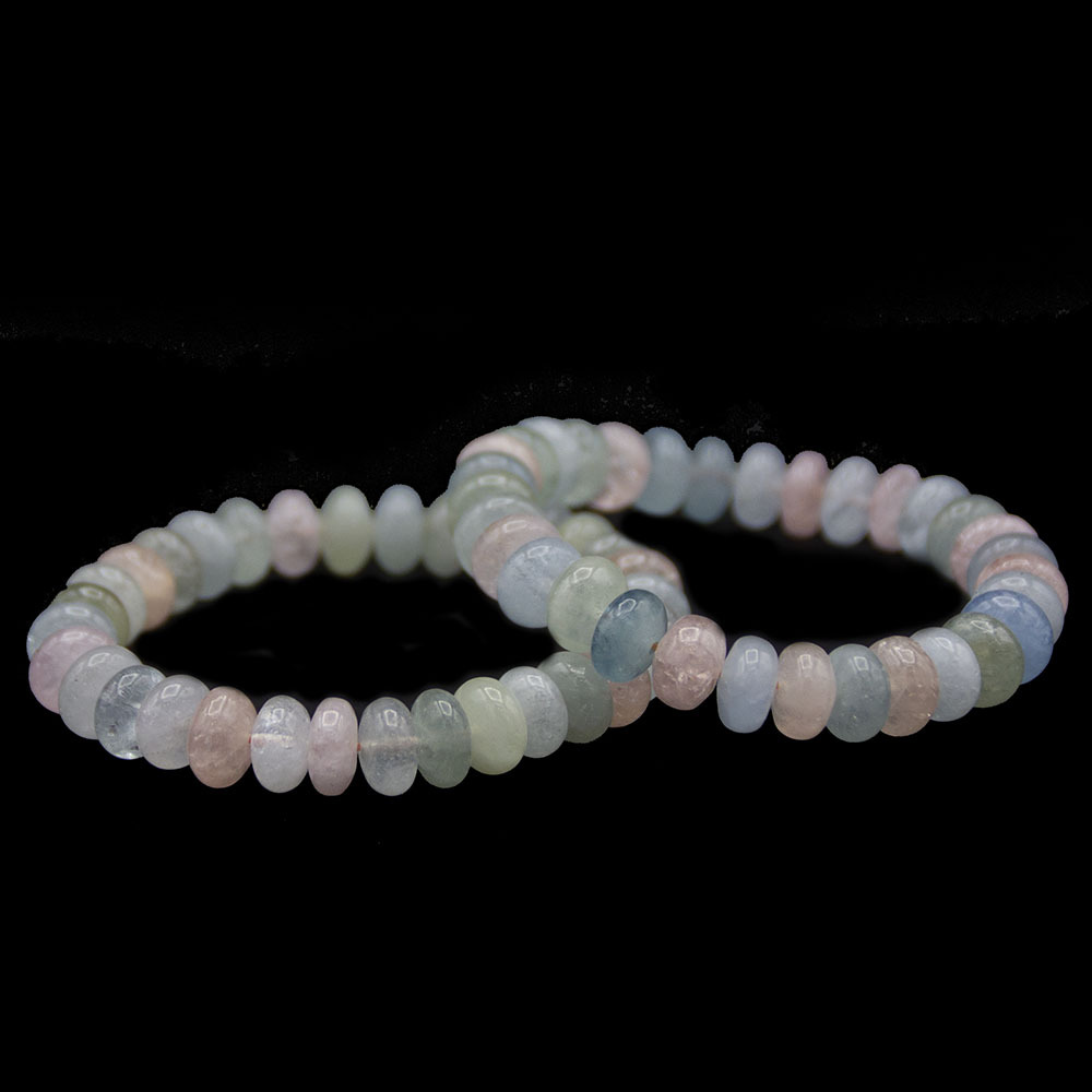 Голубой аквамарин, розовый морганит, зеленоватый берилл.