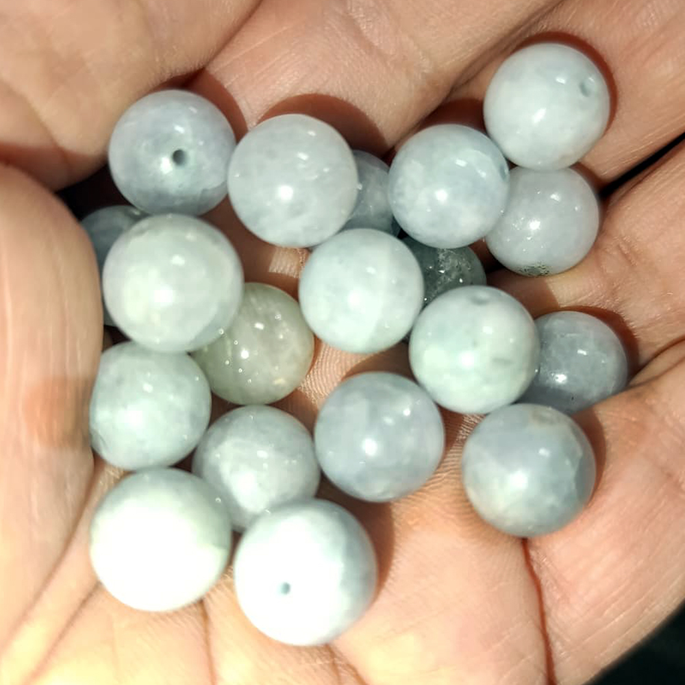 Цвет минерала нежный молочно-голубой, практически непрозрачный.