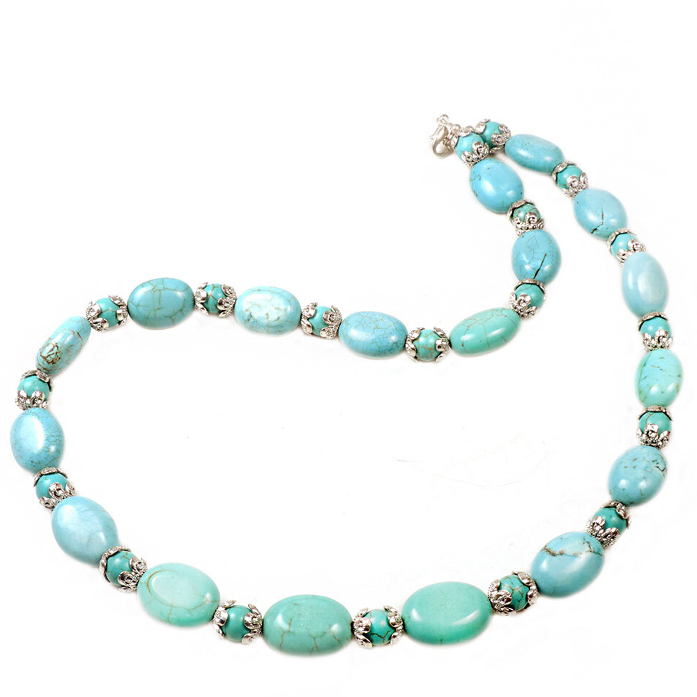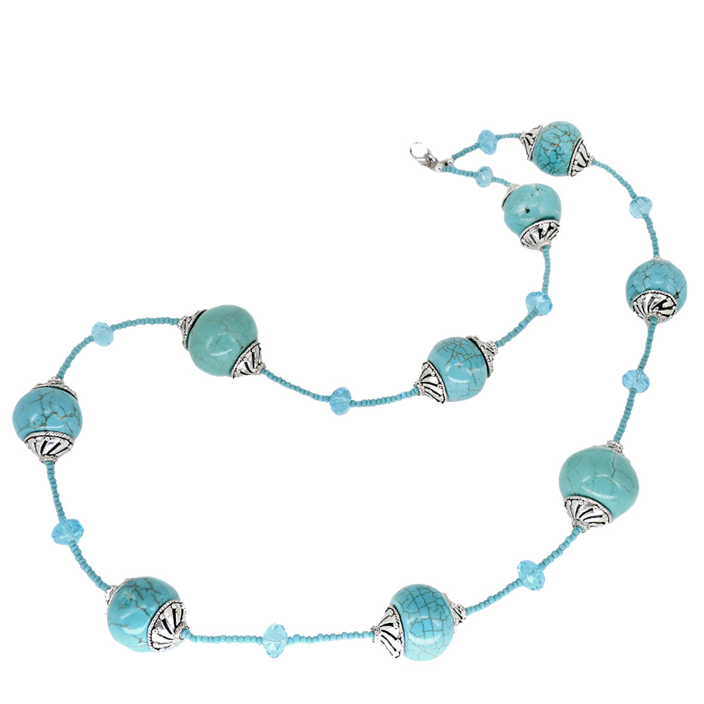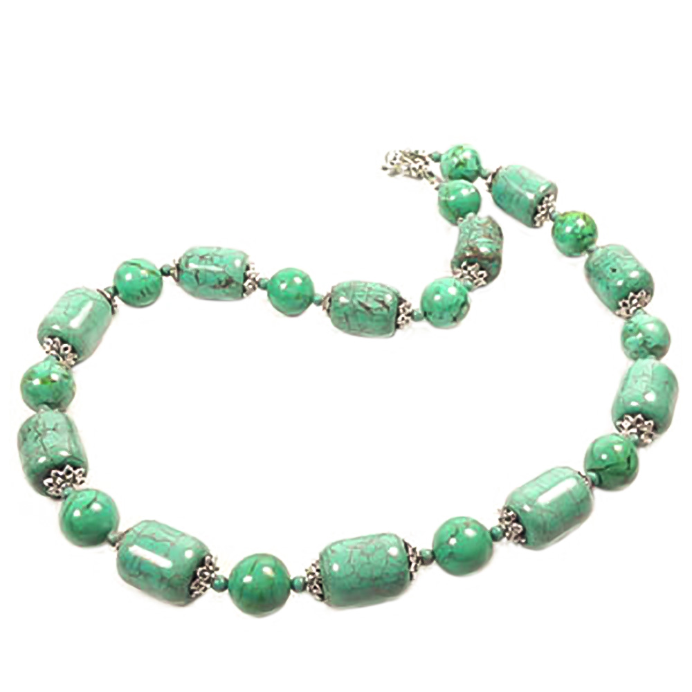 Авторские бусы в этностиле из облагороженной восстановленной бирюзы .