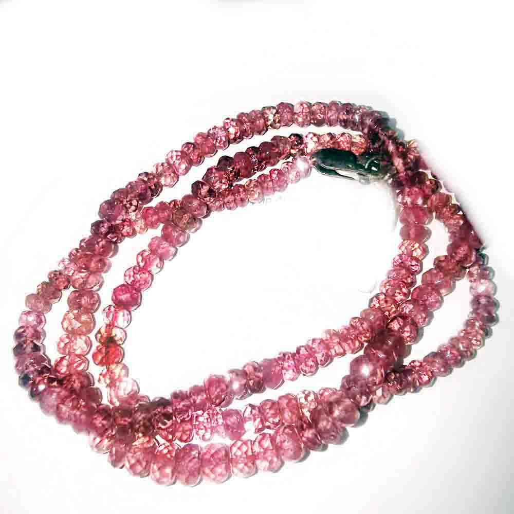 Миниатюрные бусы-трос из натурального камня розовый сапфир.