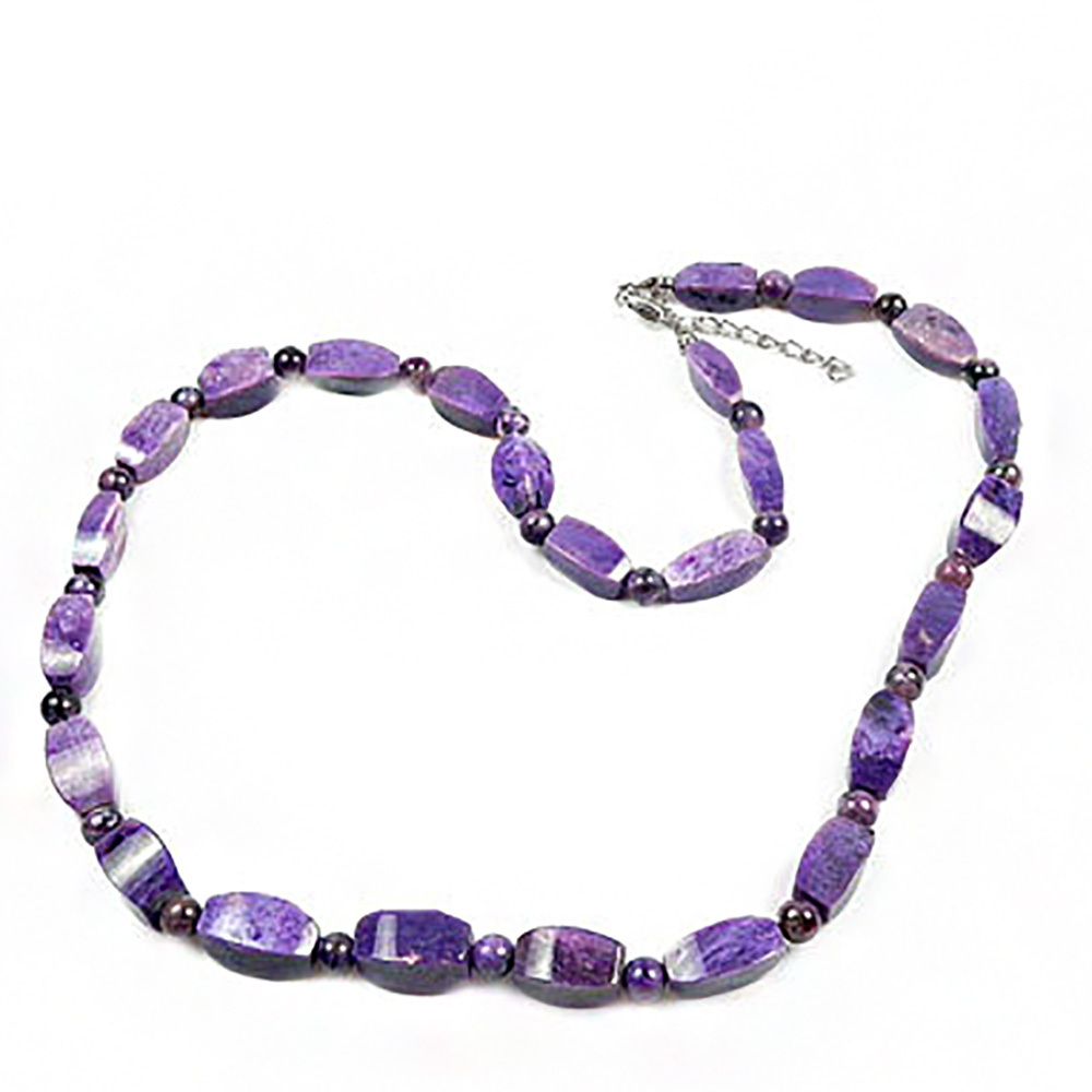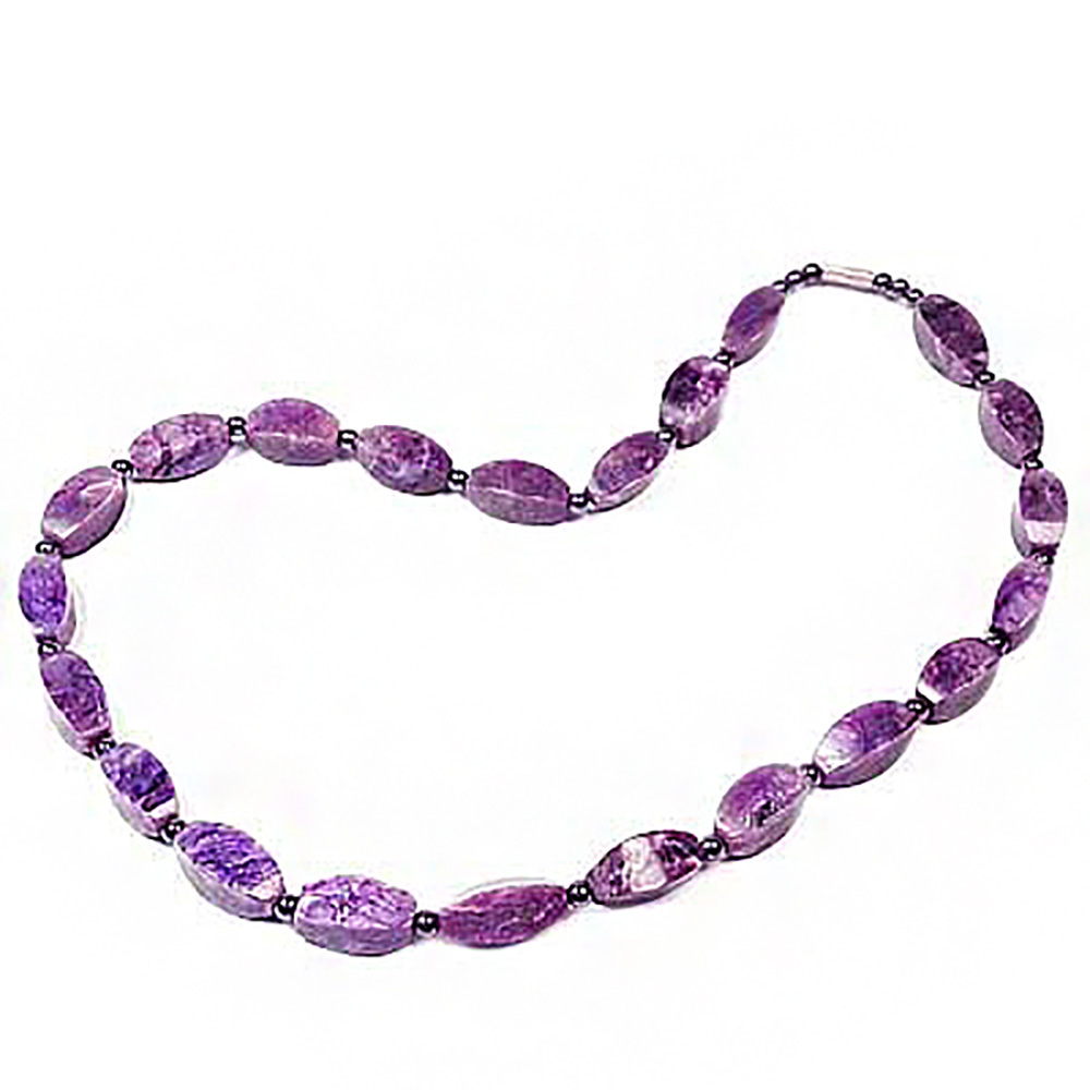 Чароит усиливает деятельность сердца, нормализует давление, помогает при почечной недостаточности, простатите, заболеваниях мочеполовой системы, очищает лимфу и через нее - железы внутренней секреции. Он дробит камни, склеротические бляшки, мощно прочищает сосуды.