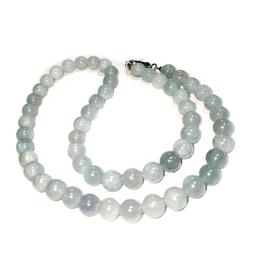 Нежный неоднородный голубой оттенок. Размер гладких бусин-шариков 8мм.
