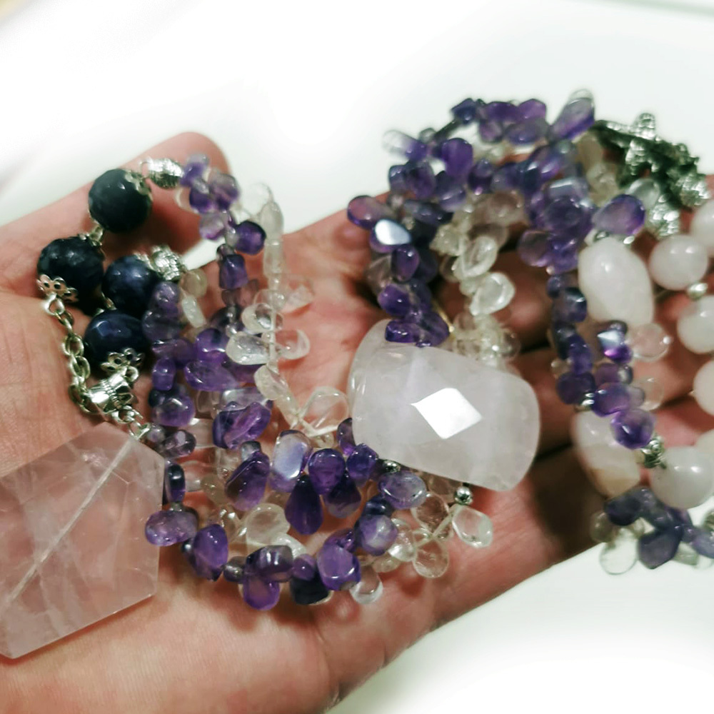 Аметист: капли примерно 10х6х4мм, ограненные шарики 12мм.