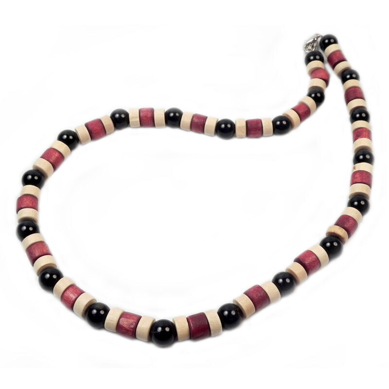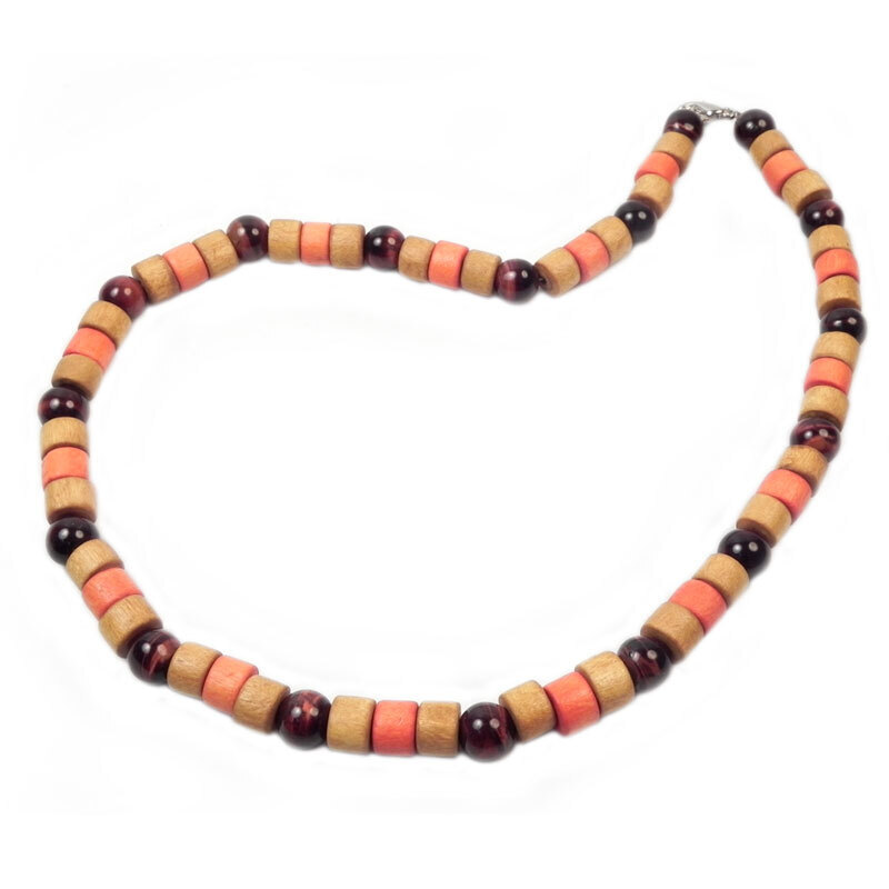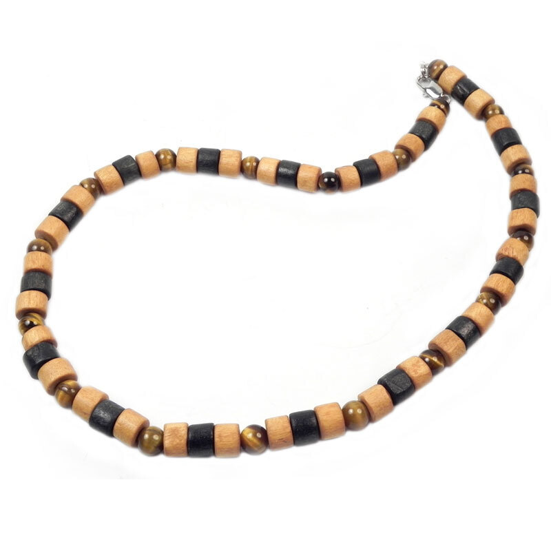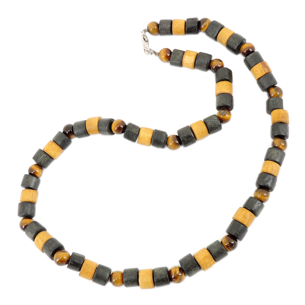 Бусы из натурального дерева со вставками из натурального камня бычий глаз. Диаметр бусин 8мм.