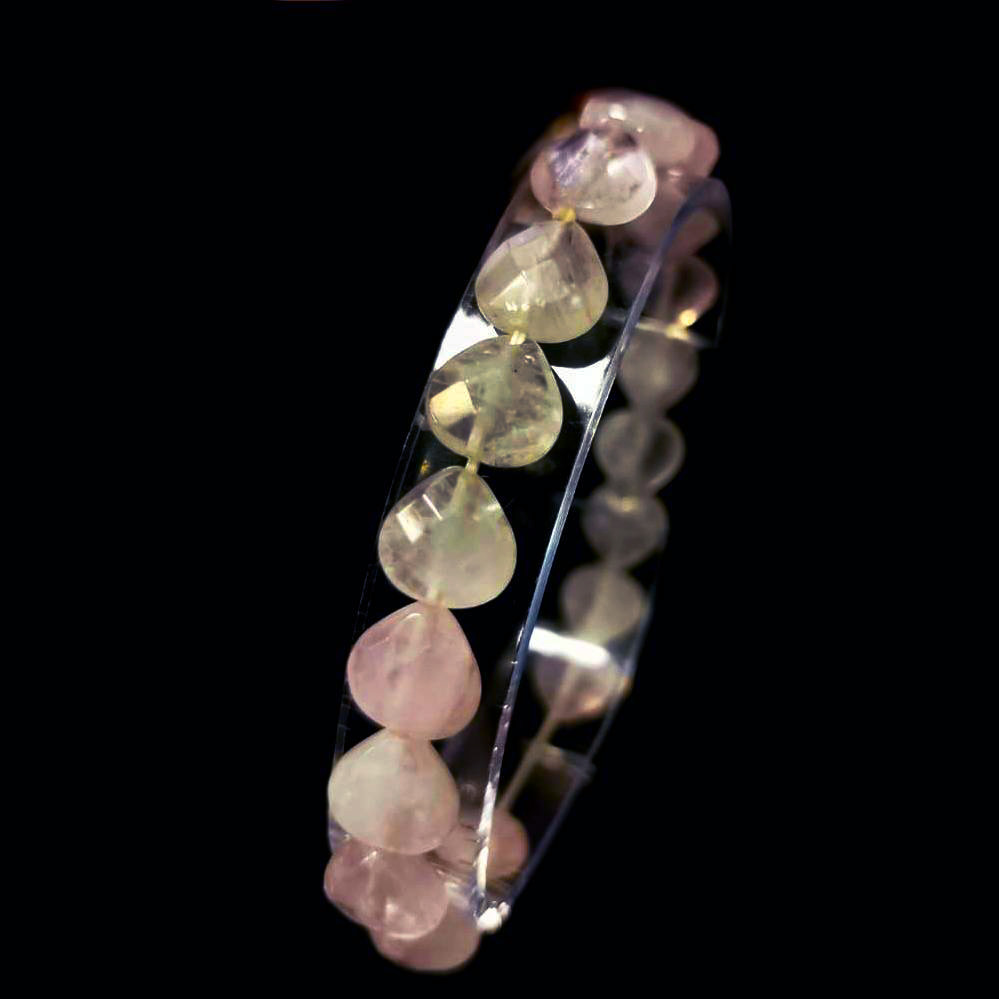 Минерал прозрачный на просвет, нежного молочно-розового цвета.