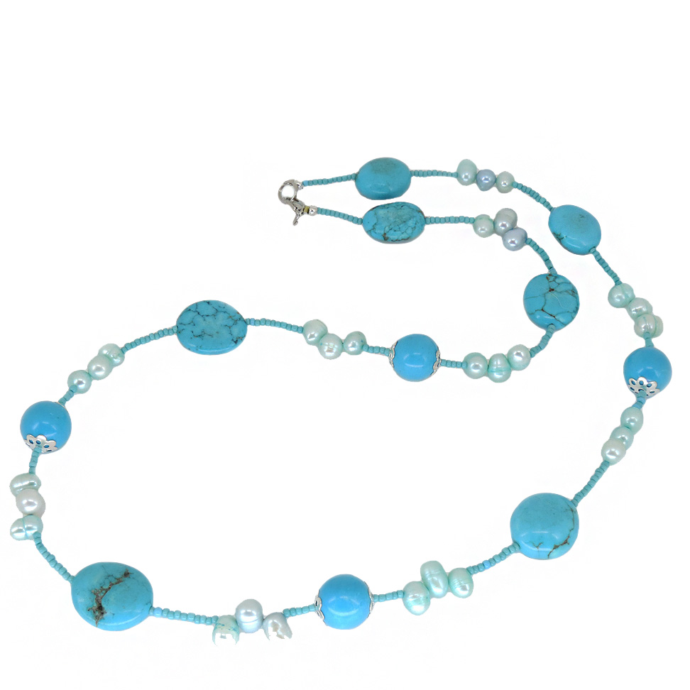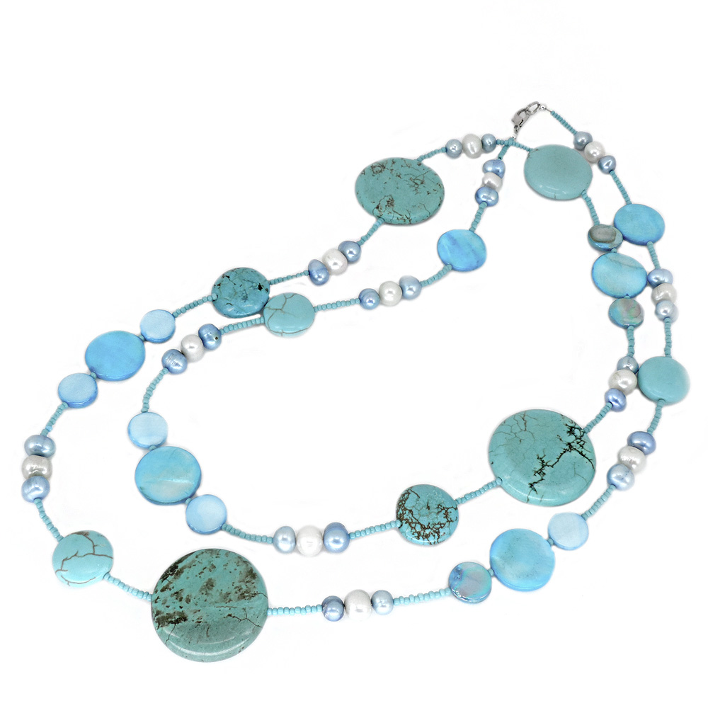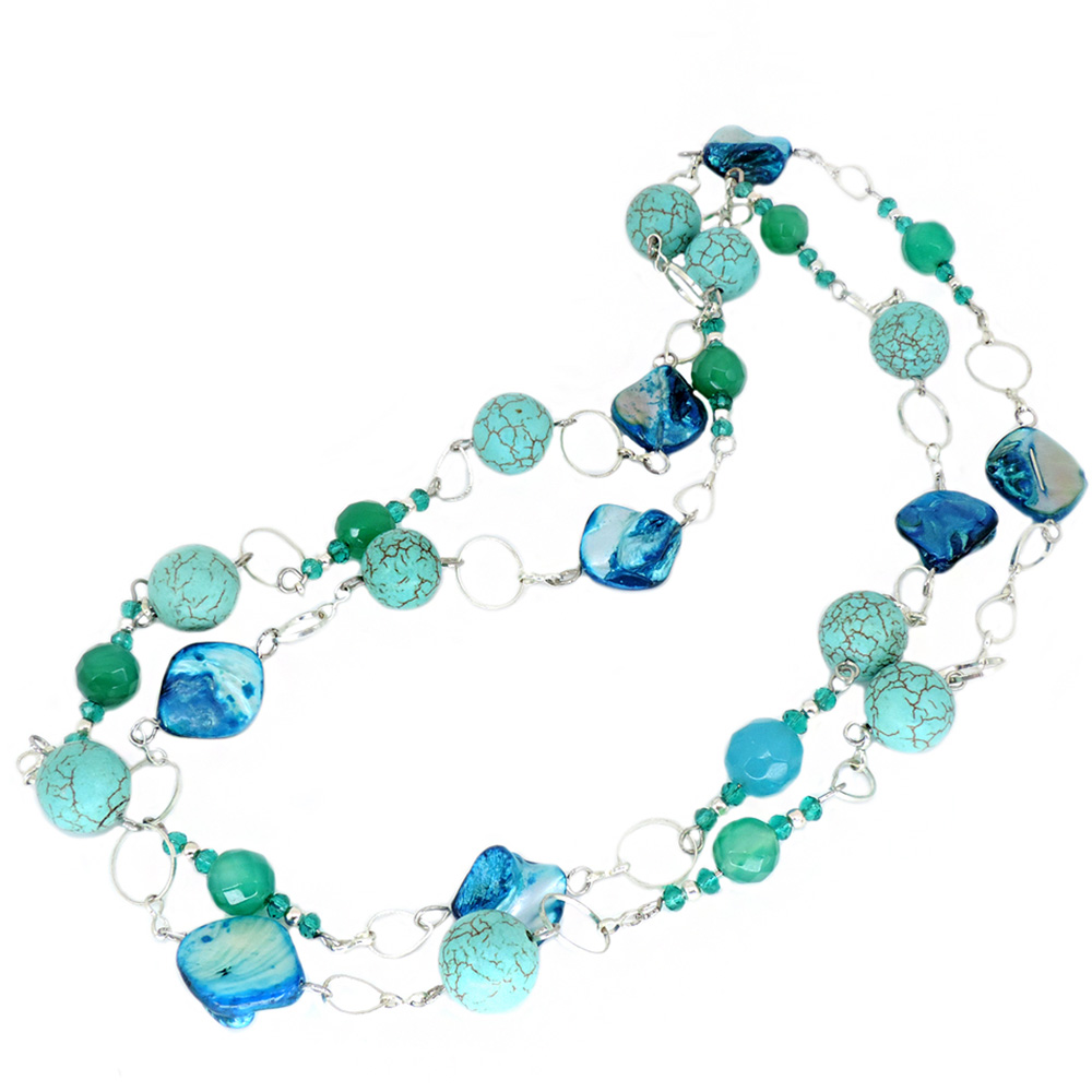 Бусины стекло цвета морской волны 3х4мм. Колорированная ракушка 17х17мм.