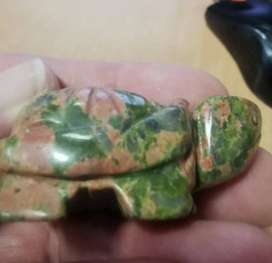 Коллекционная фигурка черепаха из натурального камня унакита.