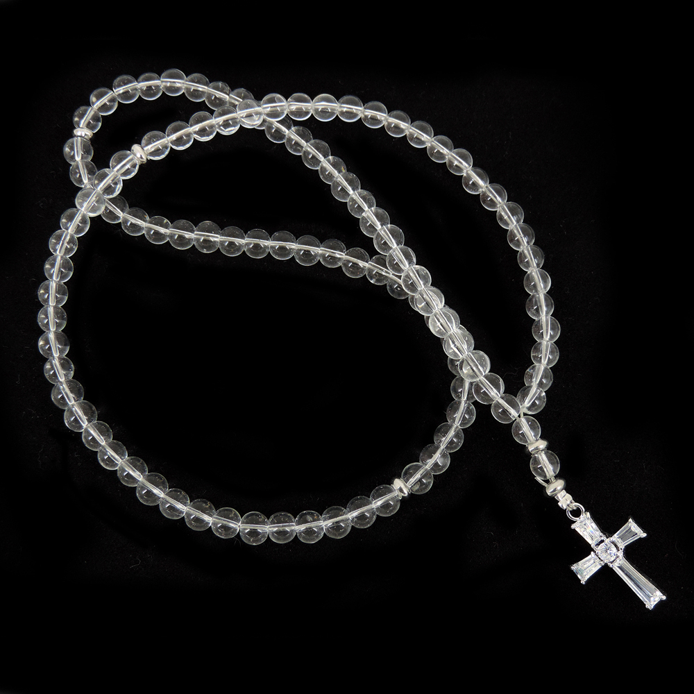 Длинные православные четки из облагороженного горного хрусталя.