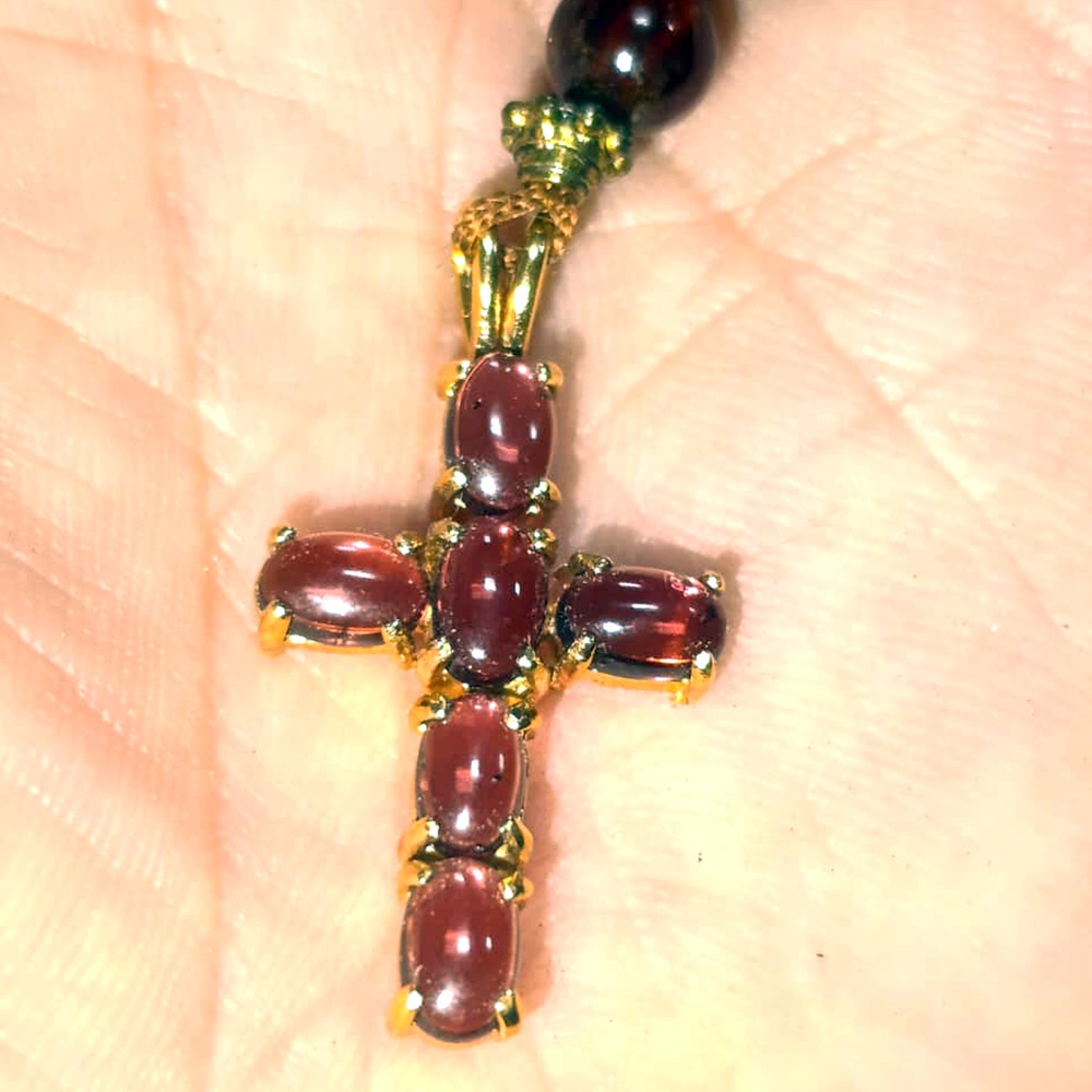 Крестик в позолоте размером 30х17х4мм. Овальные кабошоны 5х4мм.