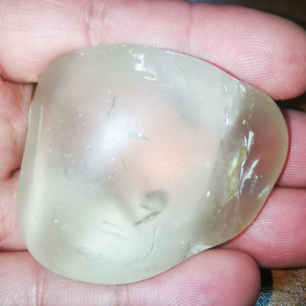 Полупрозрачный на просвет. Без полировки, шлифованный.