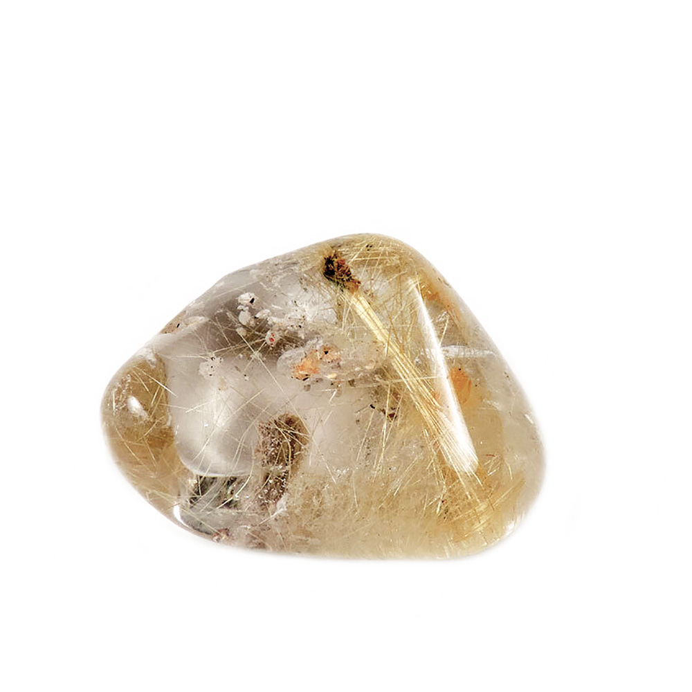 Коллекционный миниатюрный образец-галтовка кварца с рутилом.