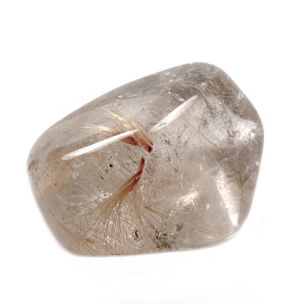 Коллекционный миниатюрный образец-галтовка кварца с рутилом.