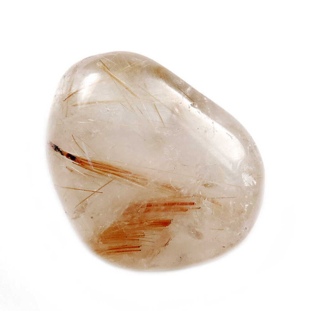 Коллекционный миниатюрный образец-галтовка кварца с рутилом.