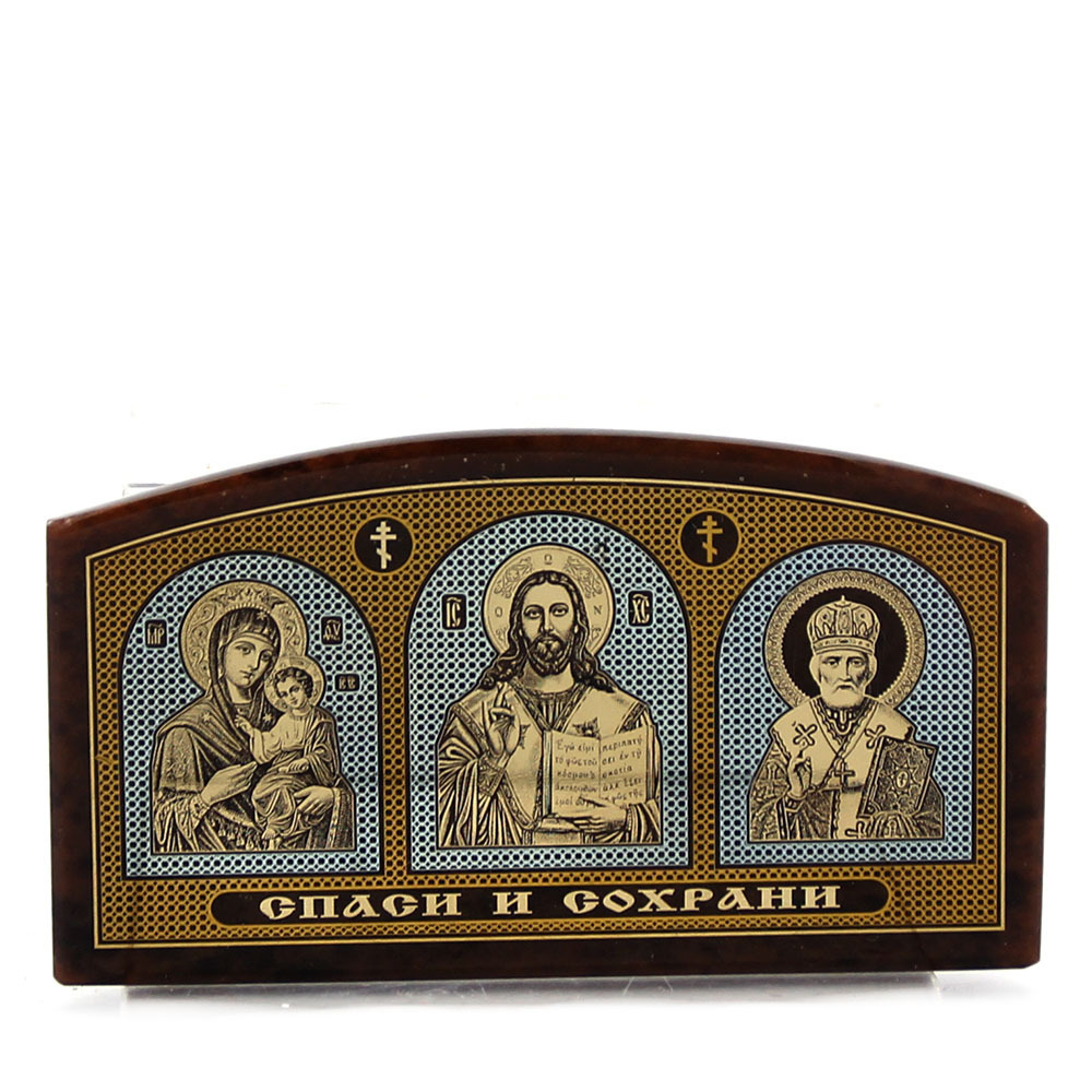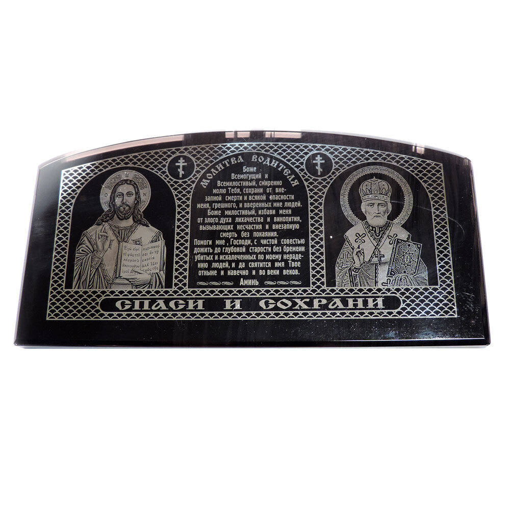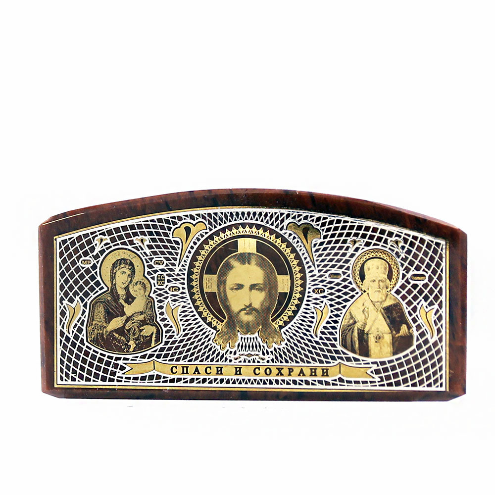 Икона самоклейка "Спаси и сохрани" из натурального обсидиана.