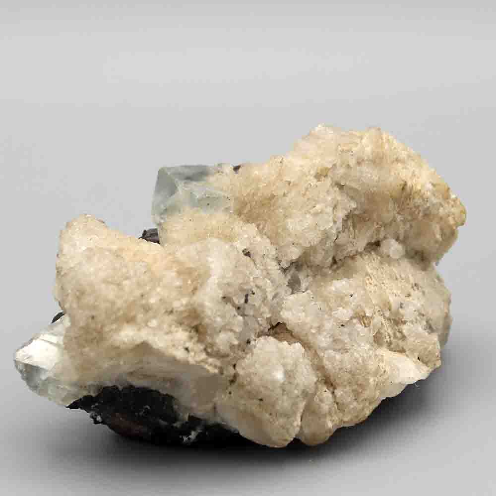 Бесцветные кристаллы флюорита на матрице кальцита.