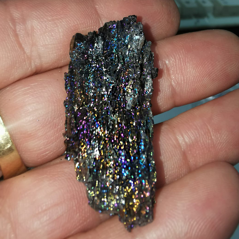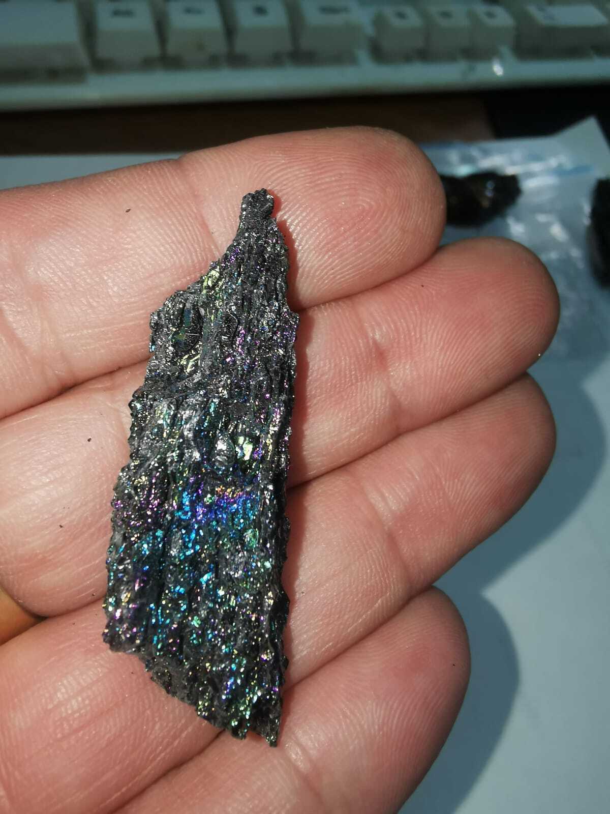 Карборунд = синтетический муассанит – искусственно полученный карбид кремния. Минералом не является. Получают при сплавлении песка и угля (т. е. кремнезема и углерода). Напоминает антрацит, но переливается всеми цветами радуги.