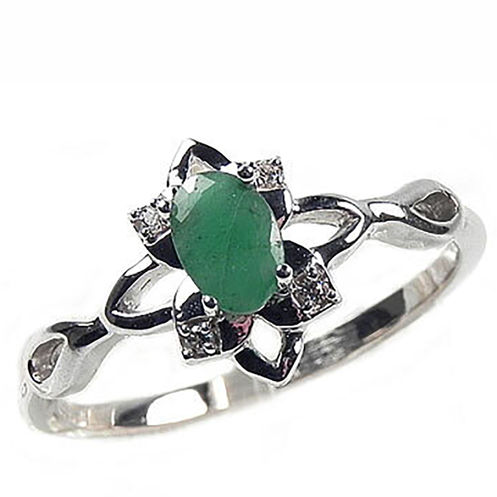 Ажурное кольцо со вставкой натурального изумруда.