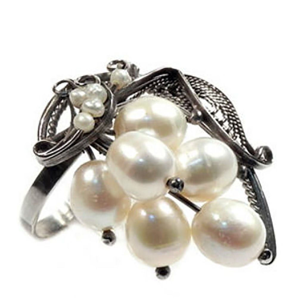Ажурное авторское кольцо в технике "русская скань" со вставками жемчуга.