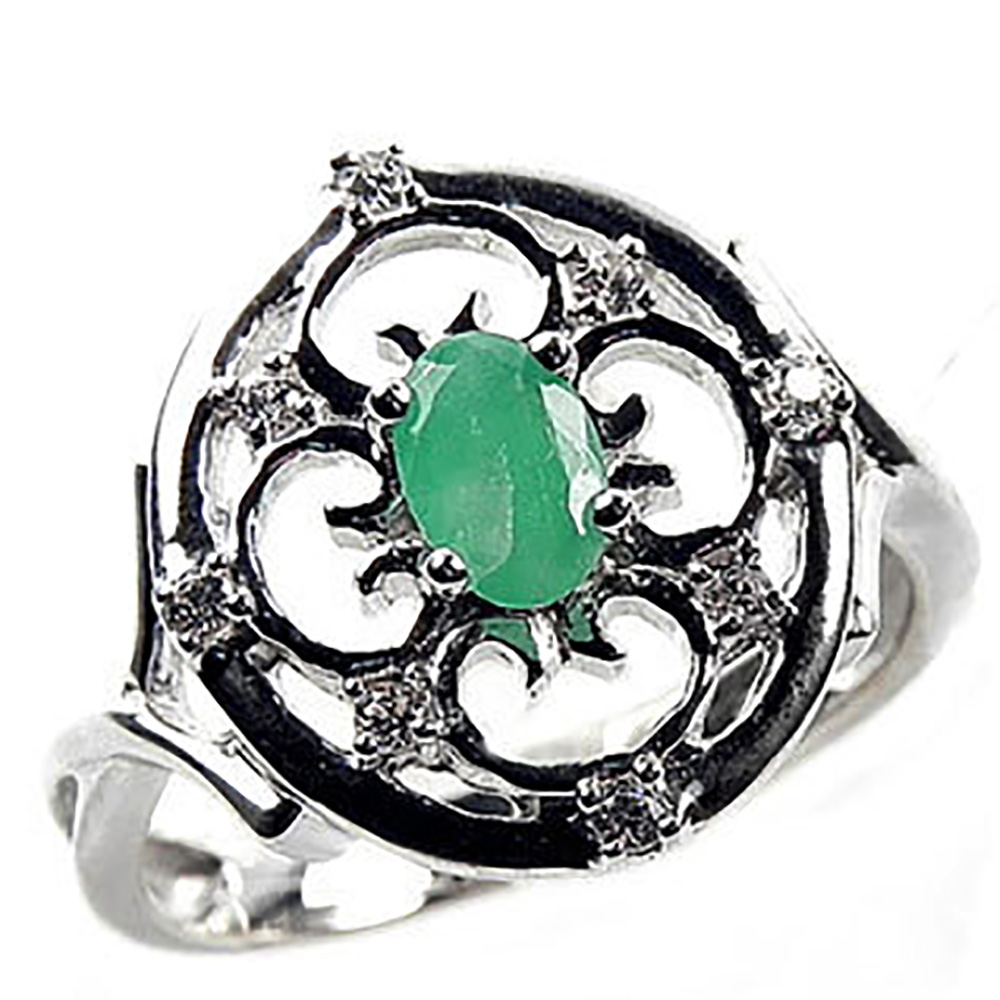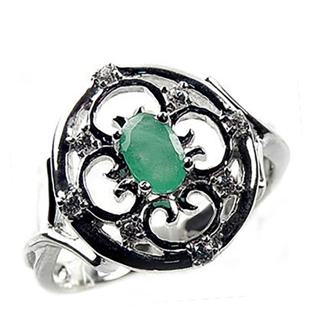 Ажурное красивое кольцо со вставкой натурального изумруда.