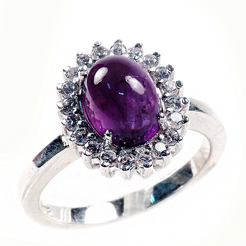Размер вставок: аметист овал 6х8мм, ограненные цирконы по ободку 1мм.