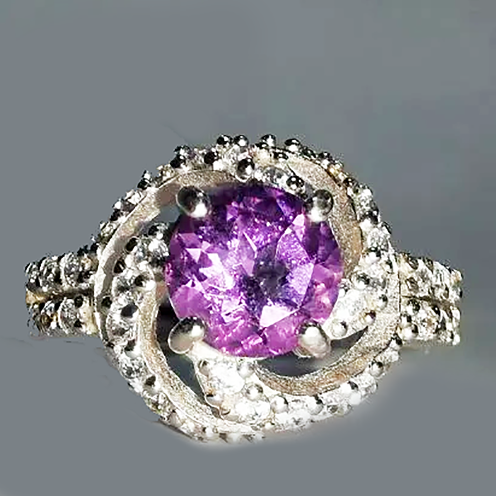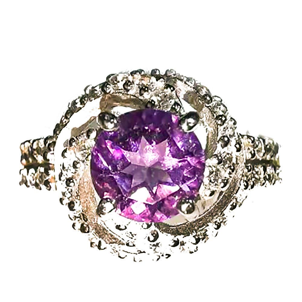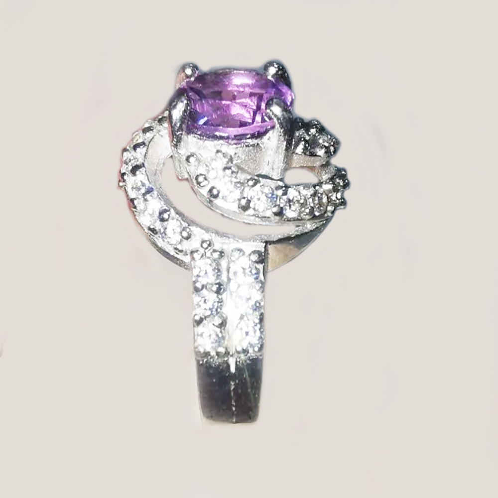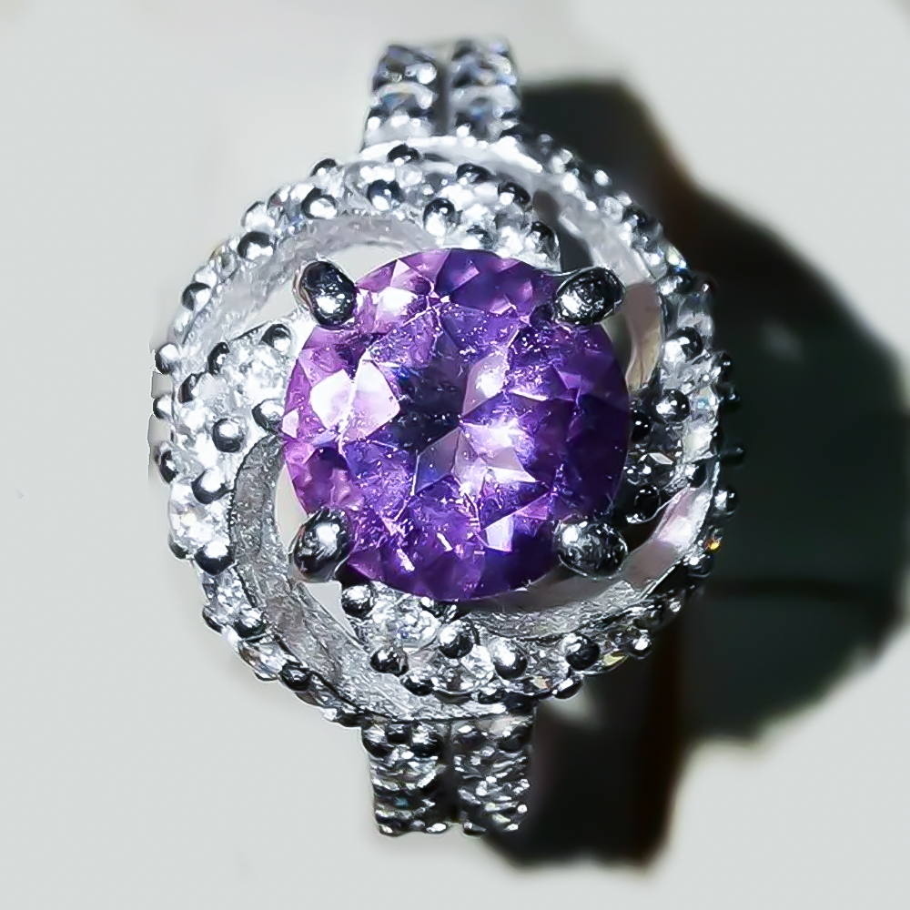 Размер вставок: аметист-круг 7мм, бесцветные цирконы по ободку 1мм.