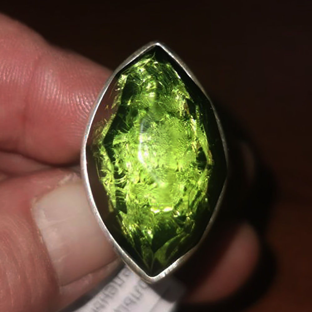 Шикарное крупное кольцо со вставкой каленого янтаря.