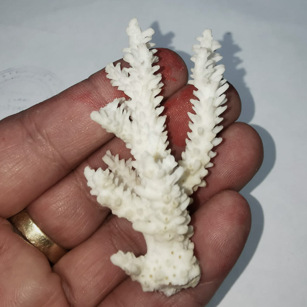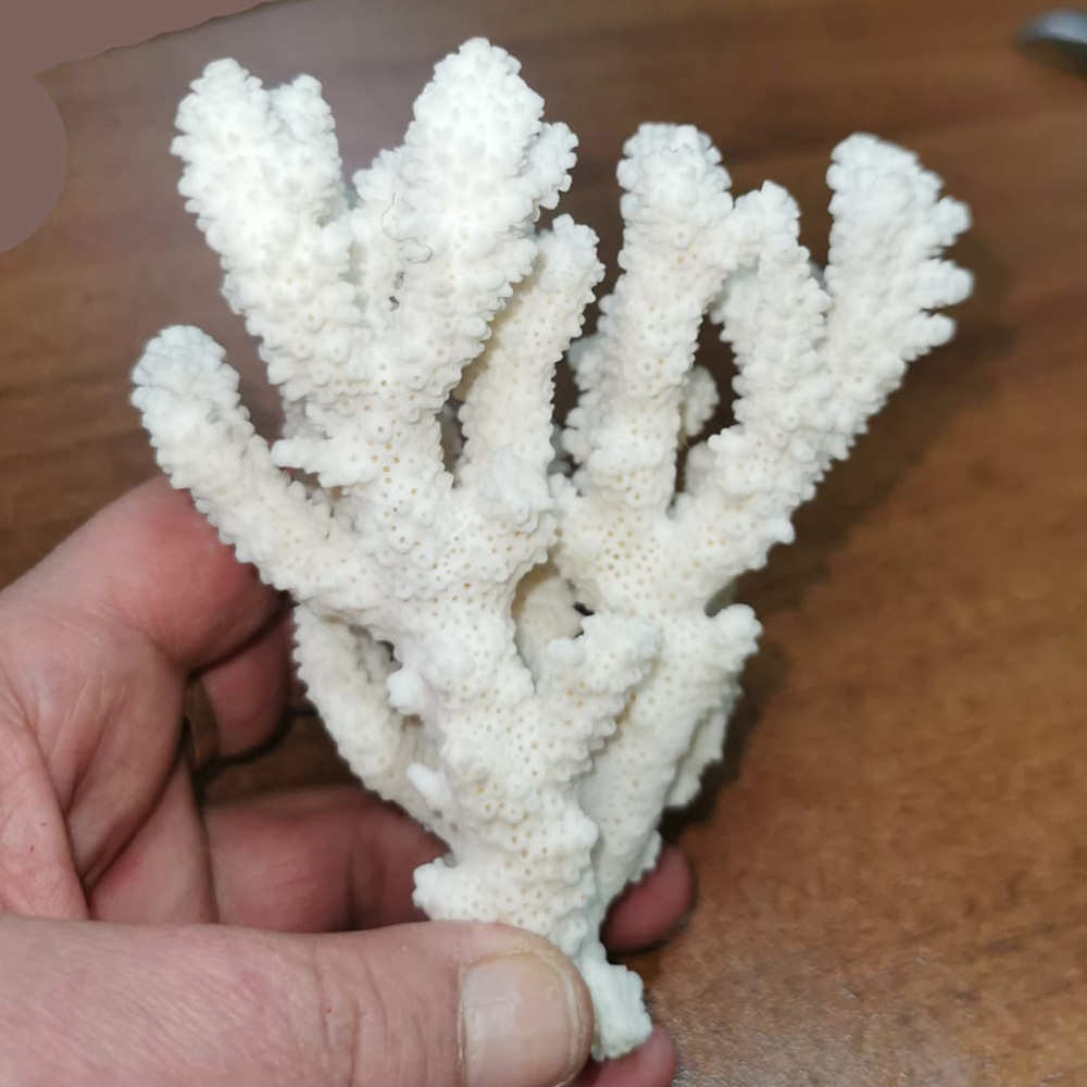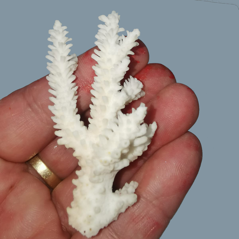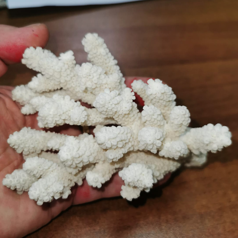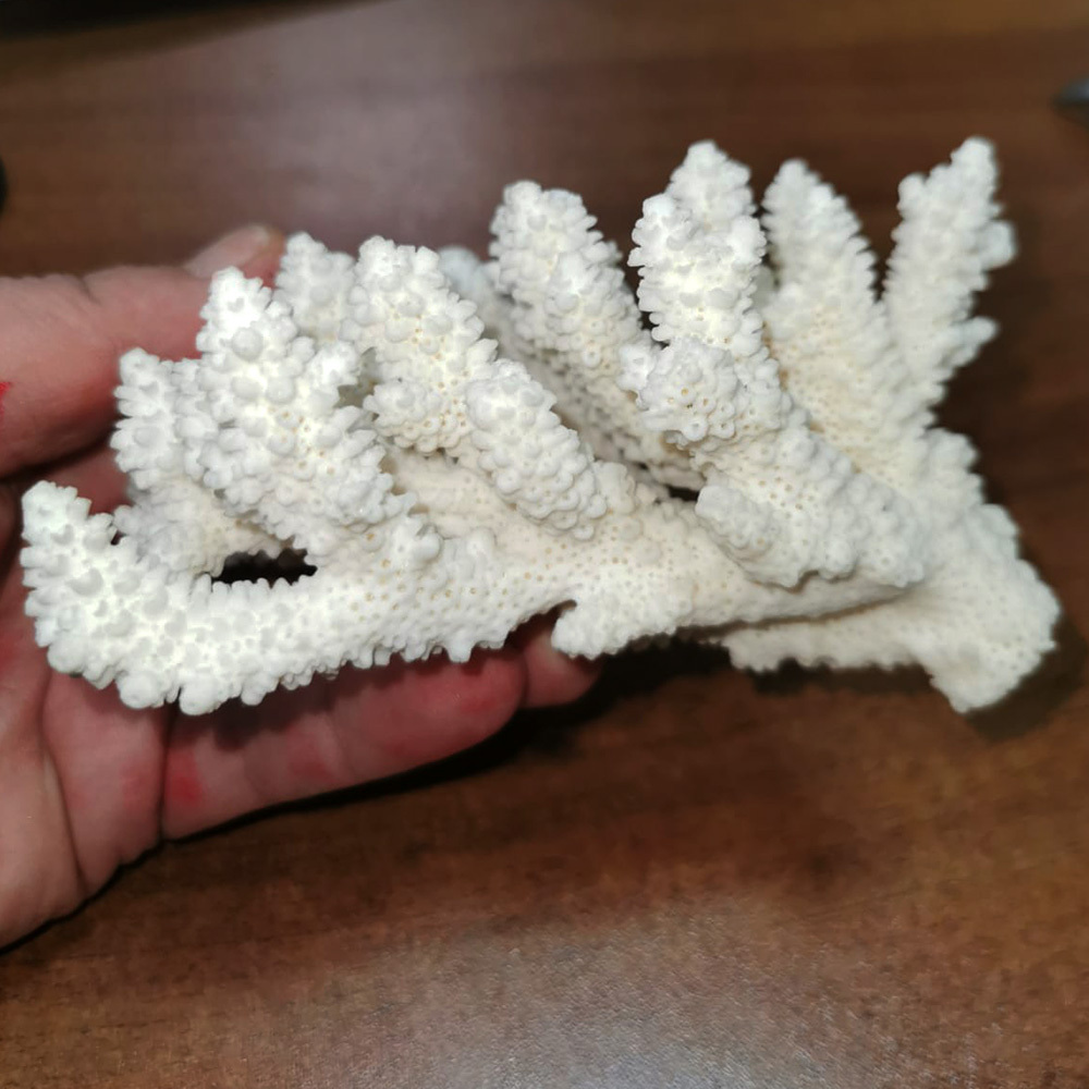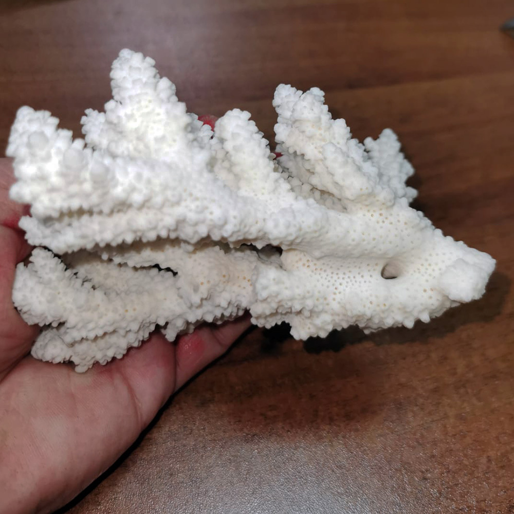 Коралл Acropora молочно-белый. Непрозрачный, хрупкий, твердый.