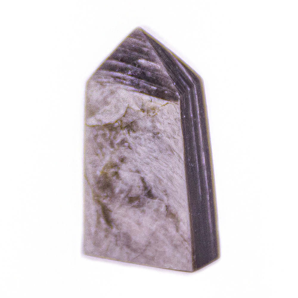 Вершинка и грани хорошей сохранности. Стоит вертикально.