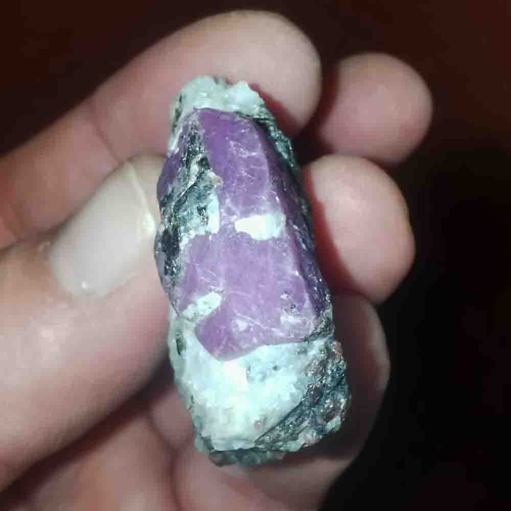 5, Кристалл розового рубина в пепельно-зеленой слюде- мусковите.
