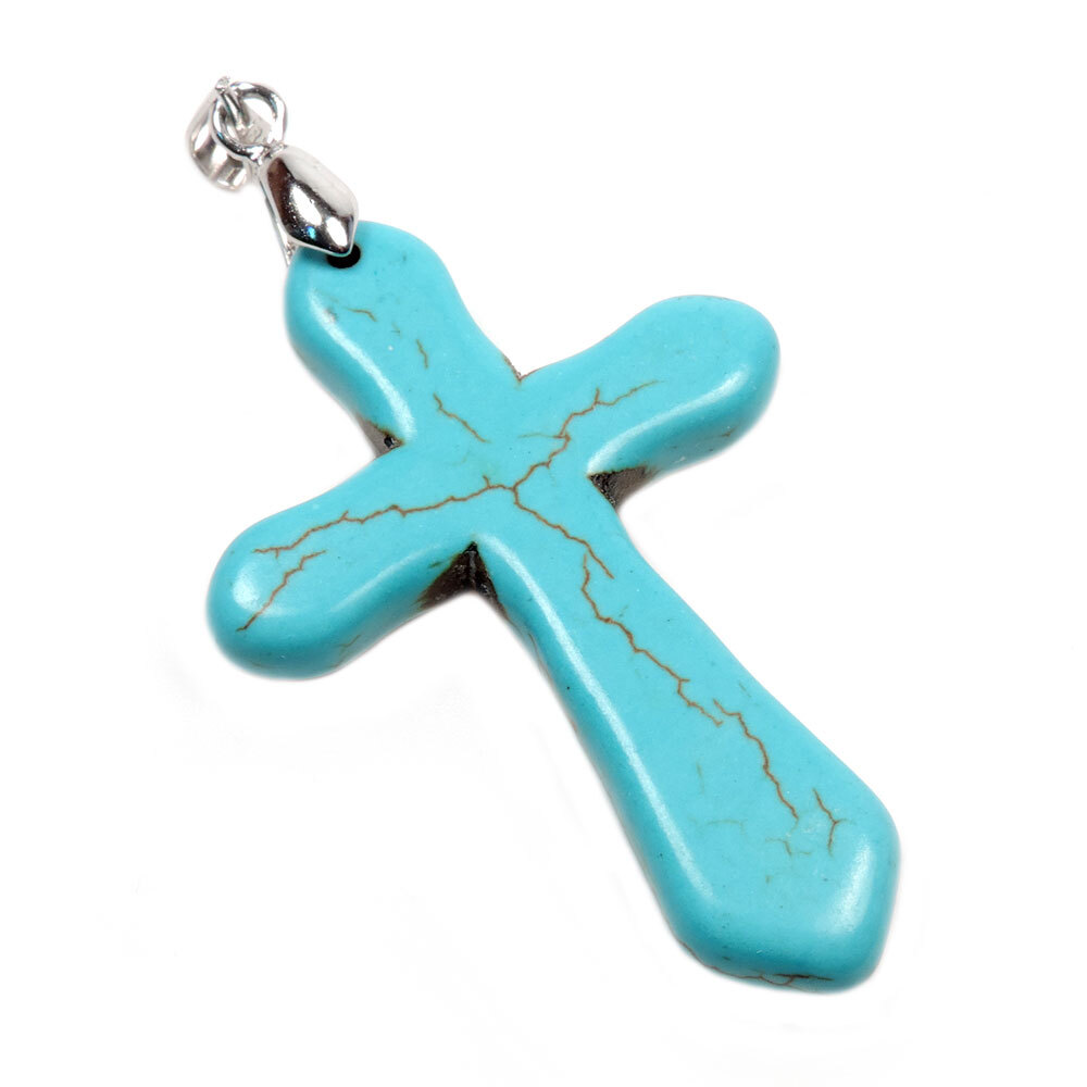 Крупный кулон с подвесом из имитации бирюзы (колорированный говлит)
