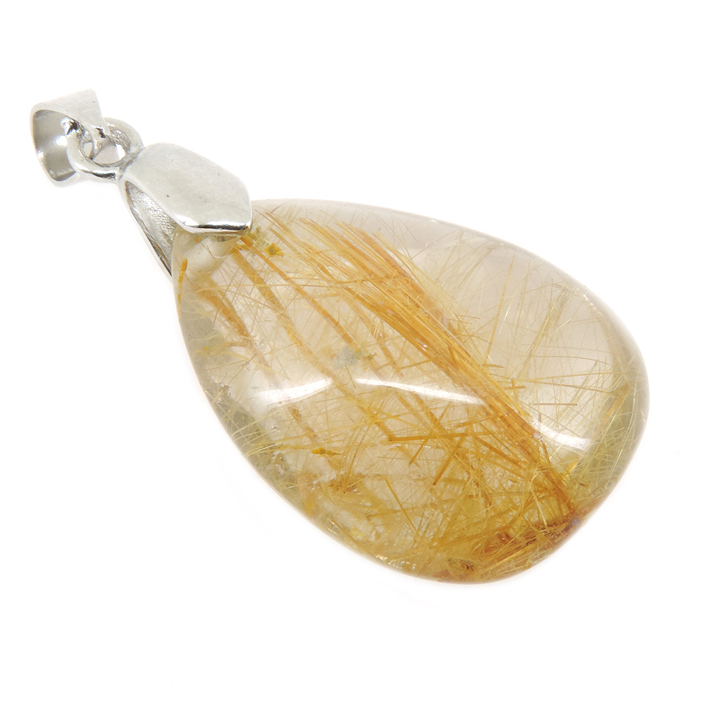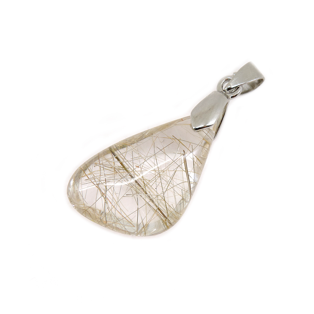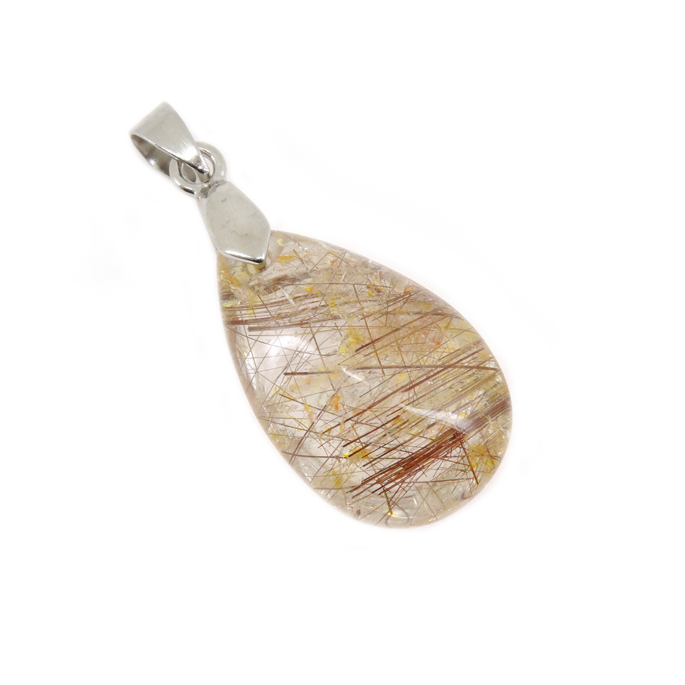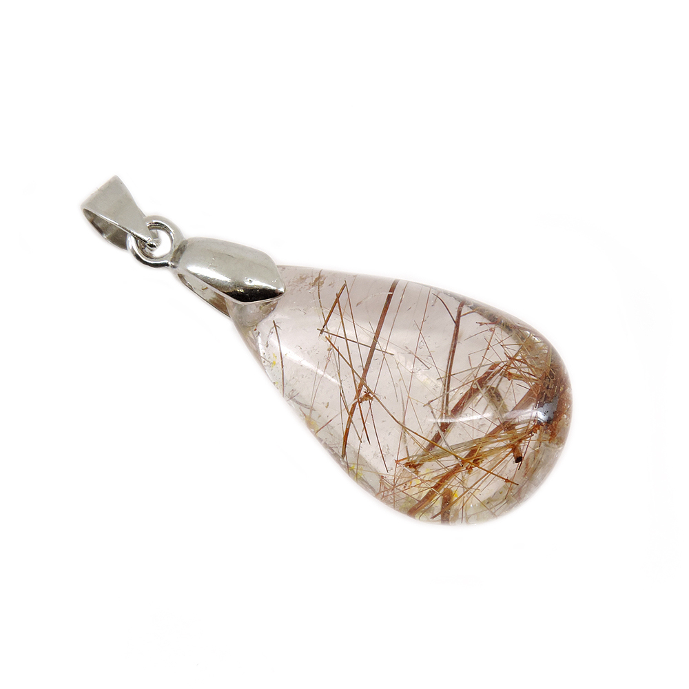 Красивый кулон со вставкой из натурального кварца-волосатика.