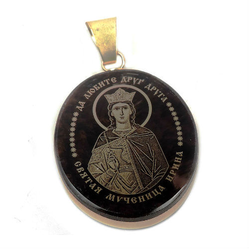 Текст молитвы и лик-напыление золотого цвета нитрид титана.