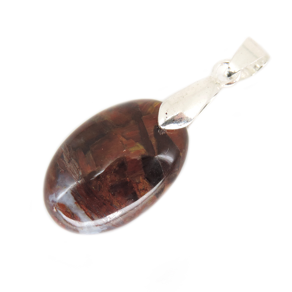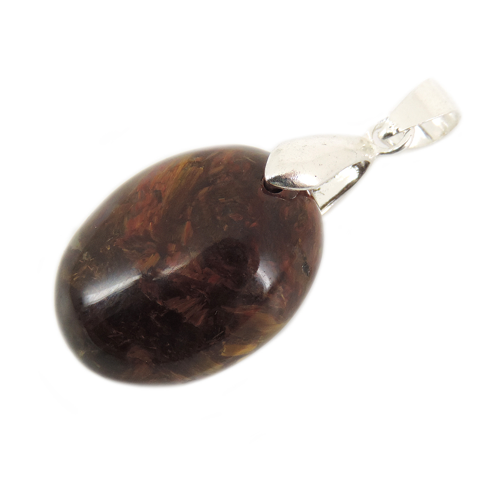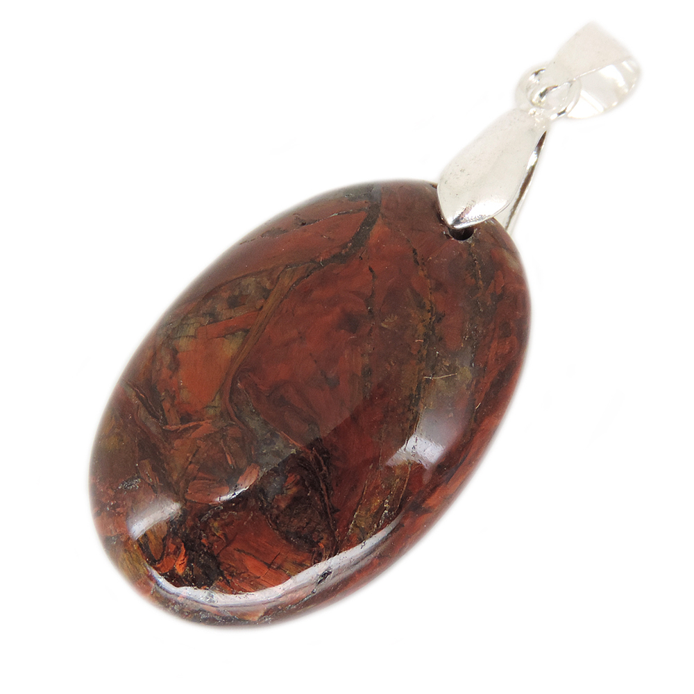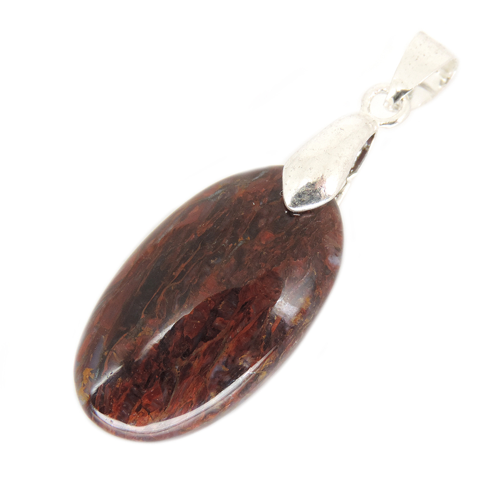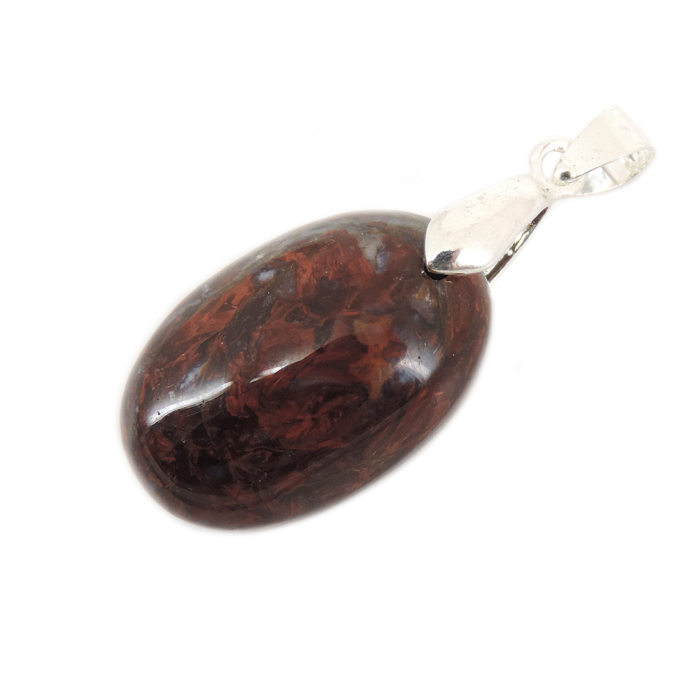 Кулон овальной формы из питерсита (Pietersite) красных тонов.