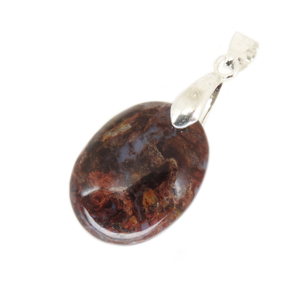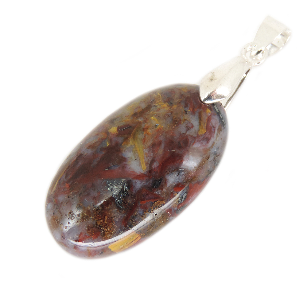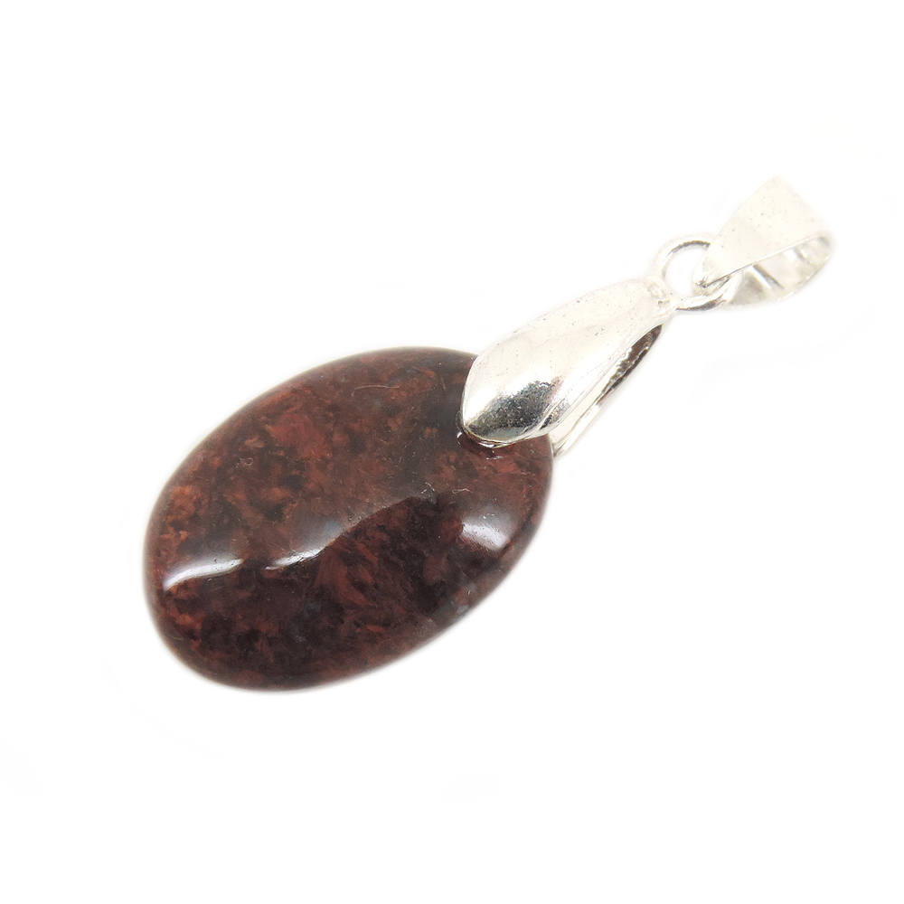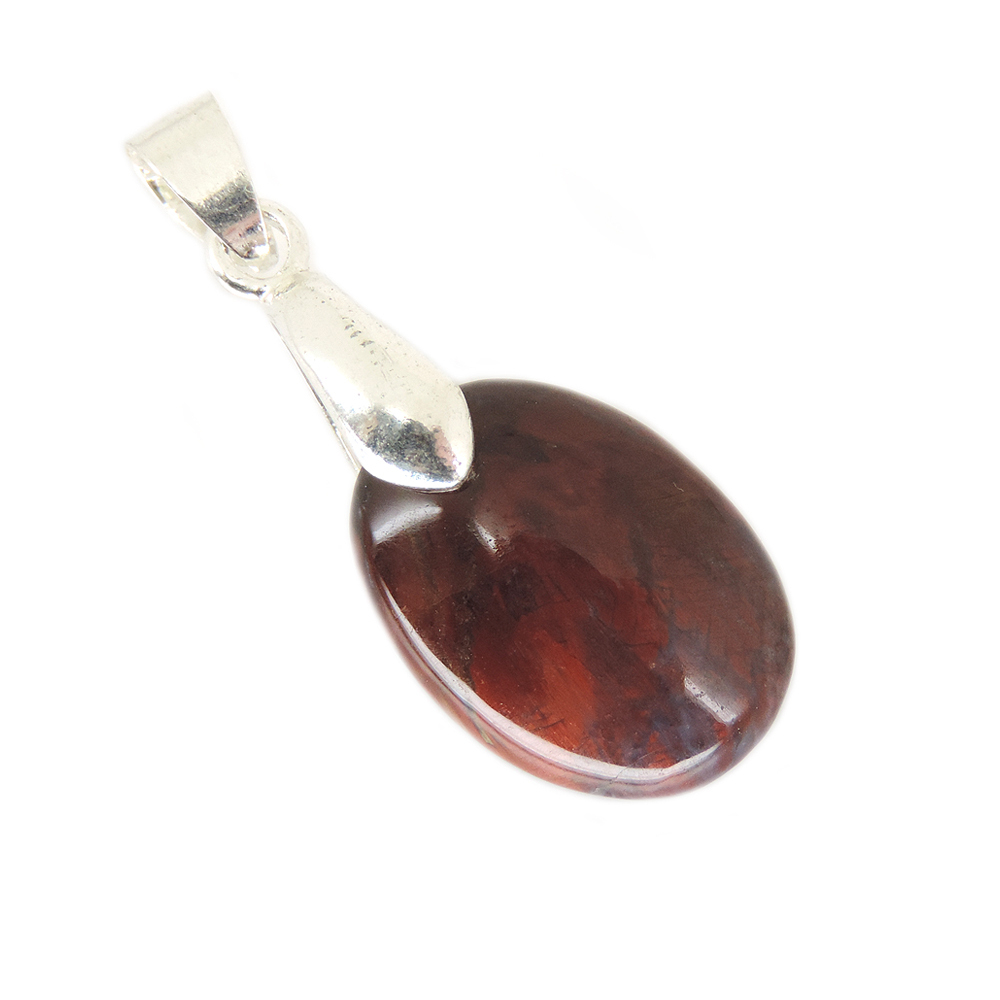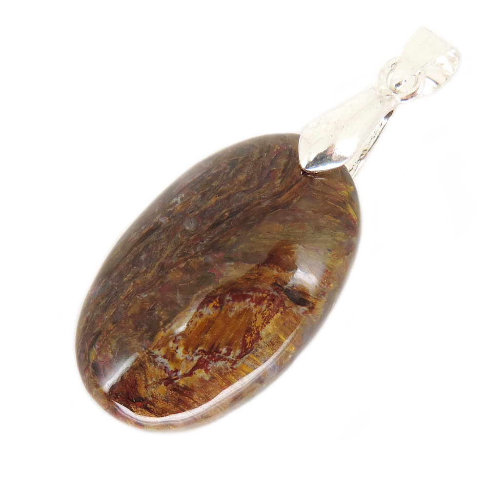 Кулон овальной формы из питерсита (Pietersite) красных тонов.