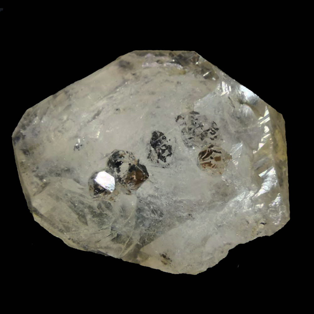 Два кристалла того же размера утоплены в кварц полностью.