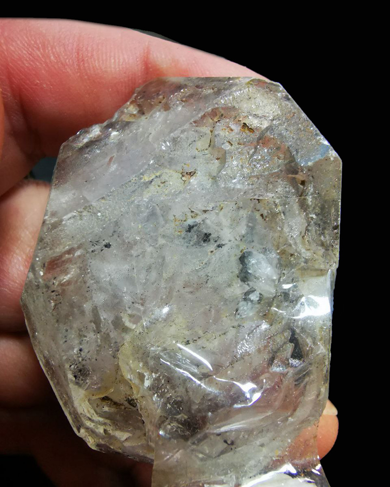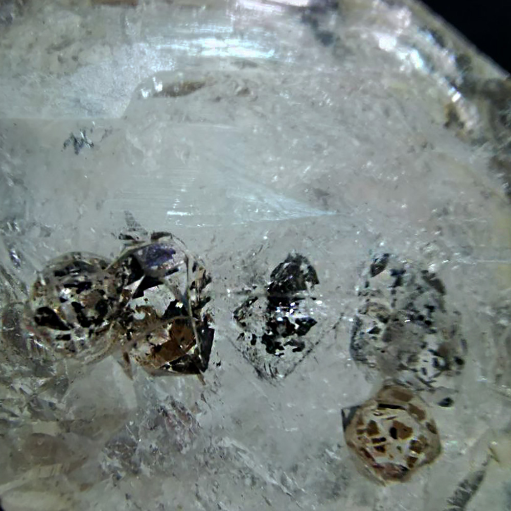 Внутренняя россыпь херкимерских алмазов с включениями битума.