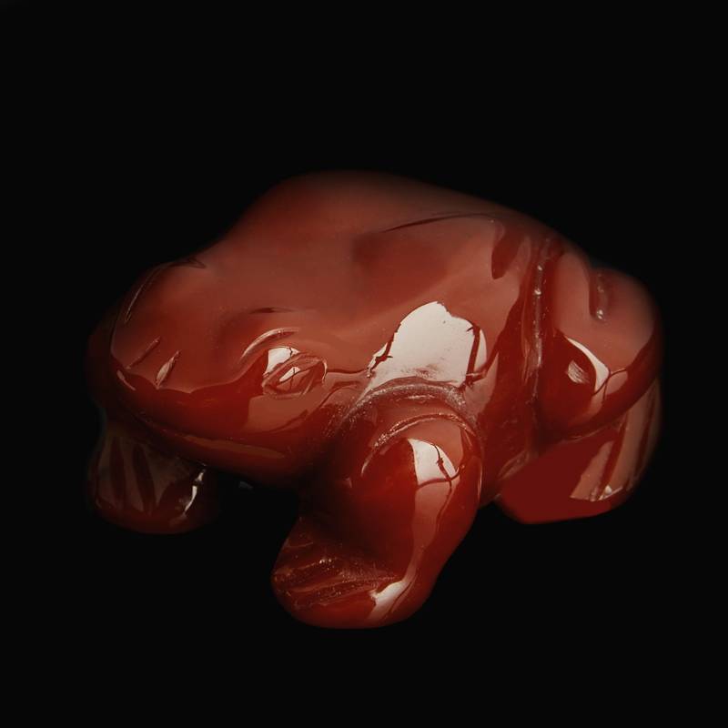 Коллекционная фигурка лягушка из натурального камня сердолика.