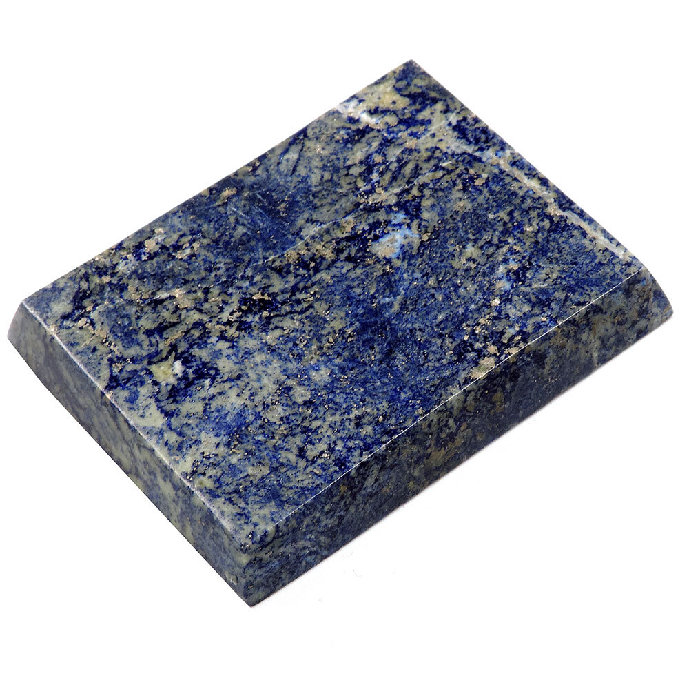 Сине-голубой, с кремовым кальцитом и золотистым пиритом минерал.