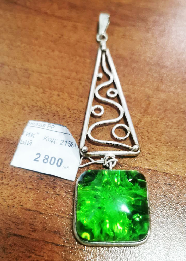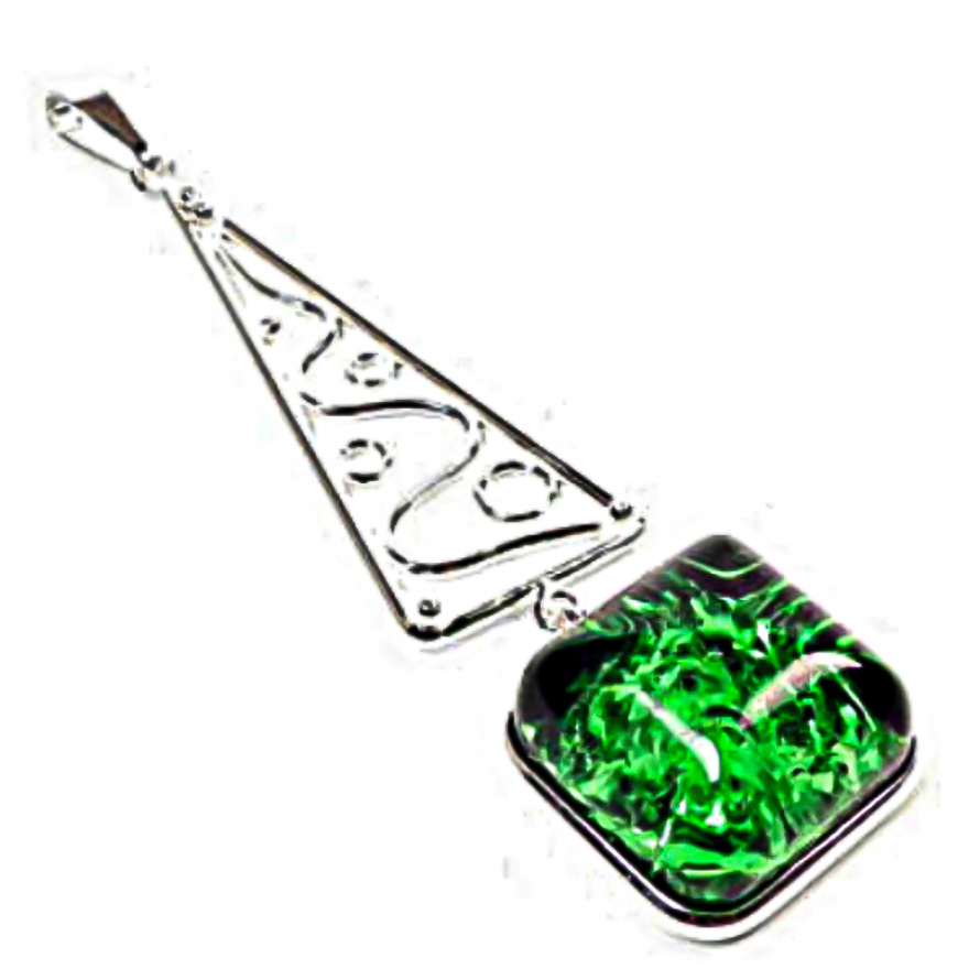 Эффектный кулон в серебрении со вставкой янтаря буранита.