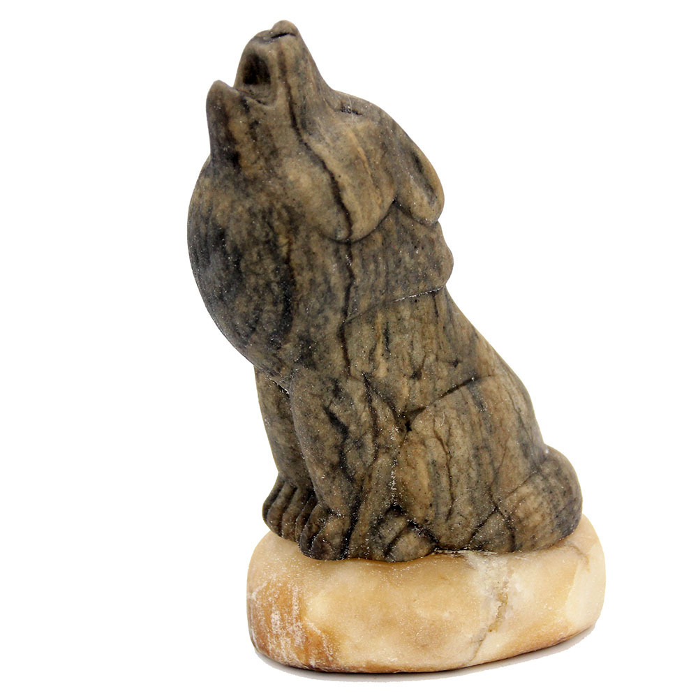 3 Фигурка волка, вырезанная из массива камя, 90х55х35мм.