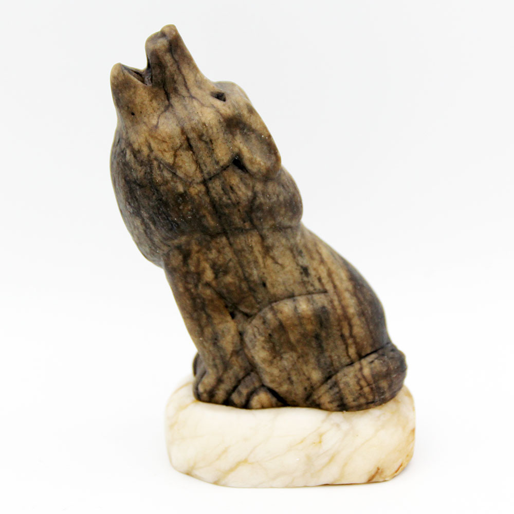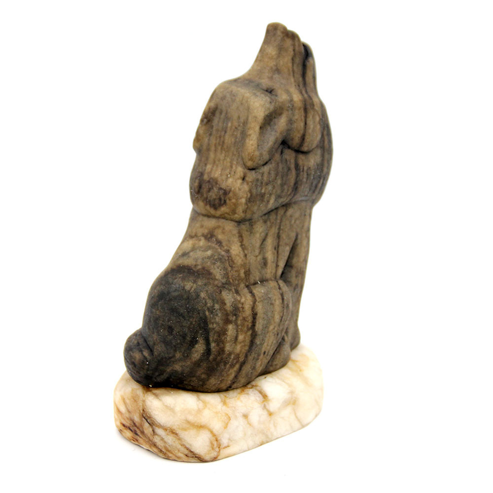 Большая кальцитовая статуэтка Волк на подставке из ангидрита.