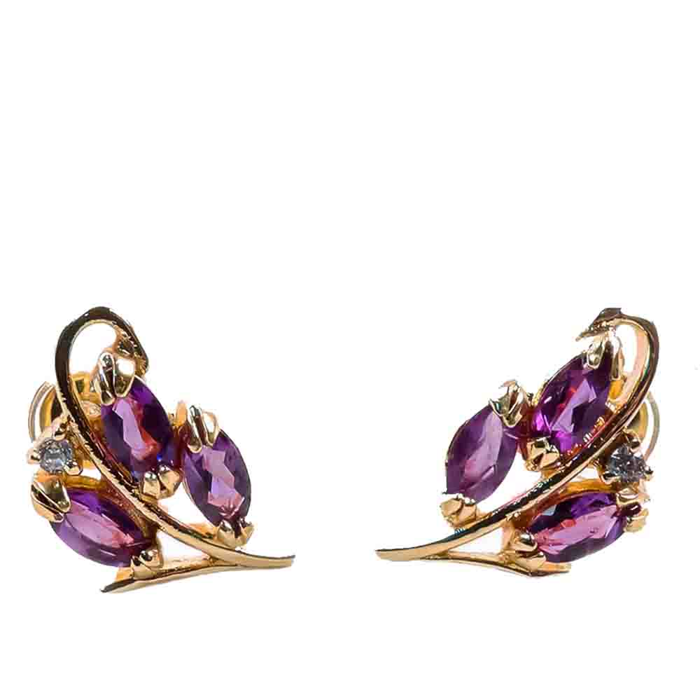 Изящные пусеты со вставками из микса аметиста и фианитов.