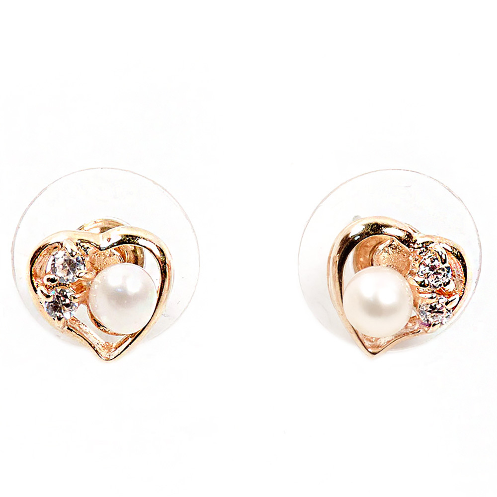 Красивые миниатюрные пусеты со вставками жемчуга и фианитов.