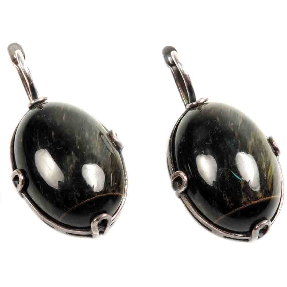 Крупные серьги со вставками натурального глазкового камня.