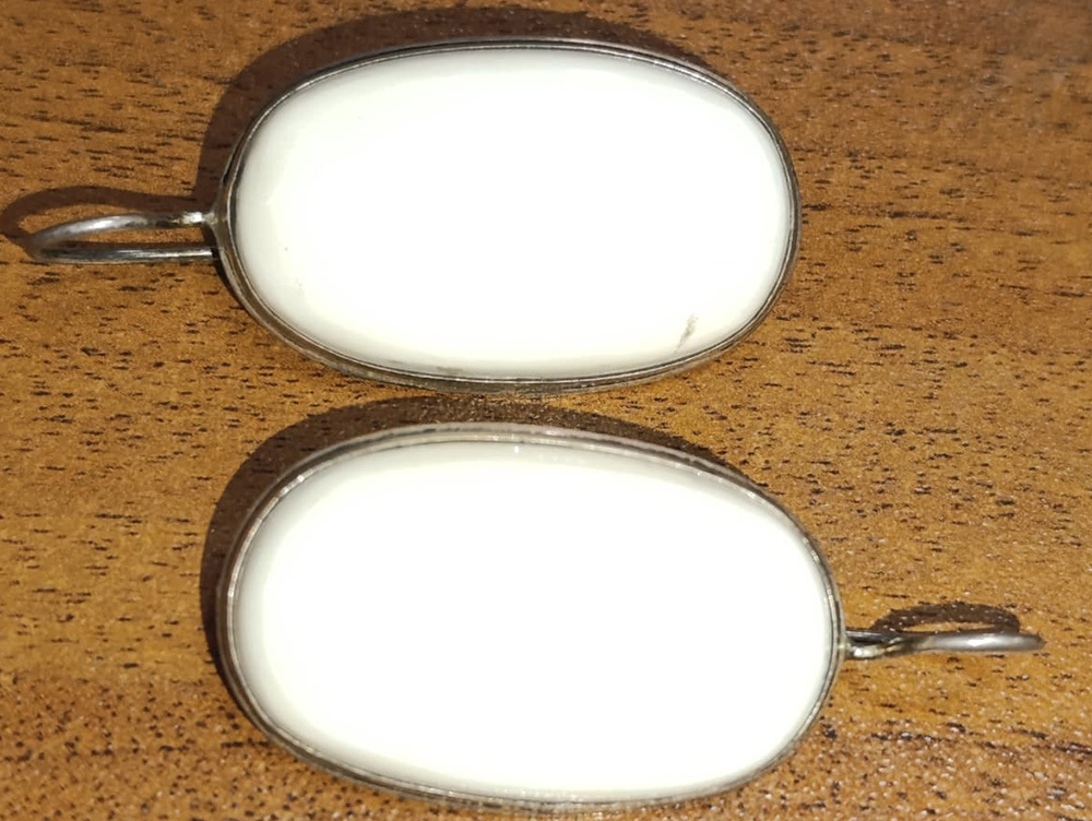 Размер гладкой, слегка выпуклой вставки 34х20мм. Ручная полировка.